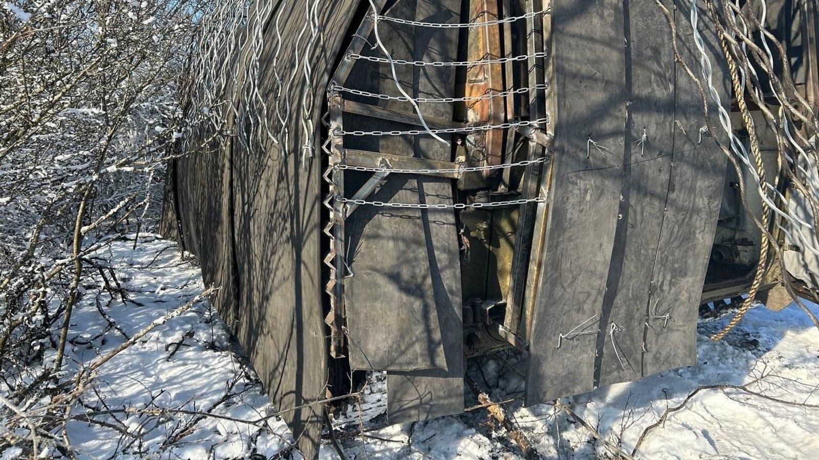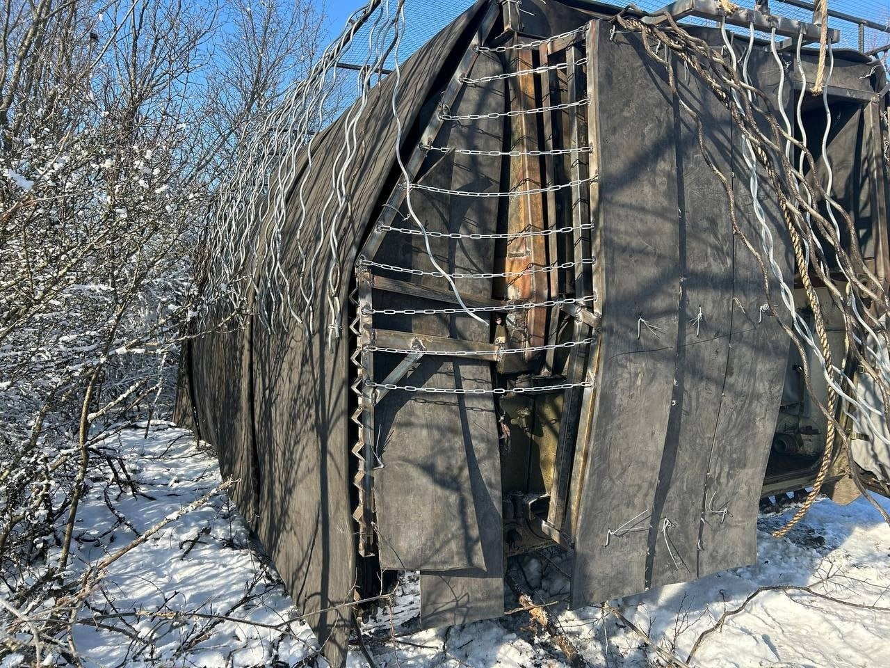 Он обратил внимание на 60-сантиметровое разнесение противокумулятивной решетки и противодронных цепей, прикрывающих верхнюю лобовую деталь корпуса и передний сектор верхнего бронелиста корпуса.