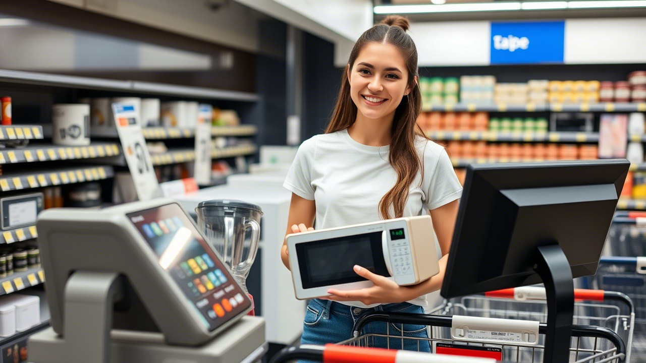 На терминалах покупатели могут сканировать штрих-коды и оплачивать покупки банковскими картами или через систему быстрых платежей. Если же товар требует снятия защиты от кражи, то покупатели могут обратиться к любому свободному сотруднику магазина для помощи.