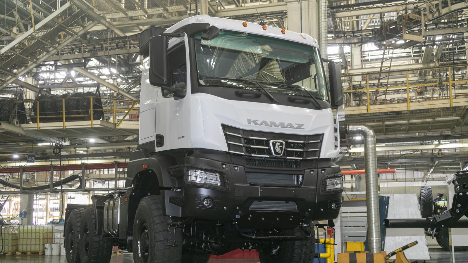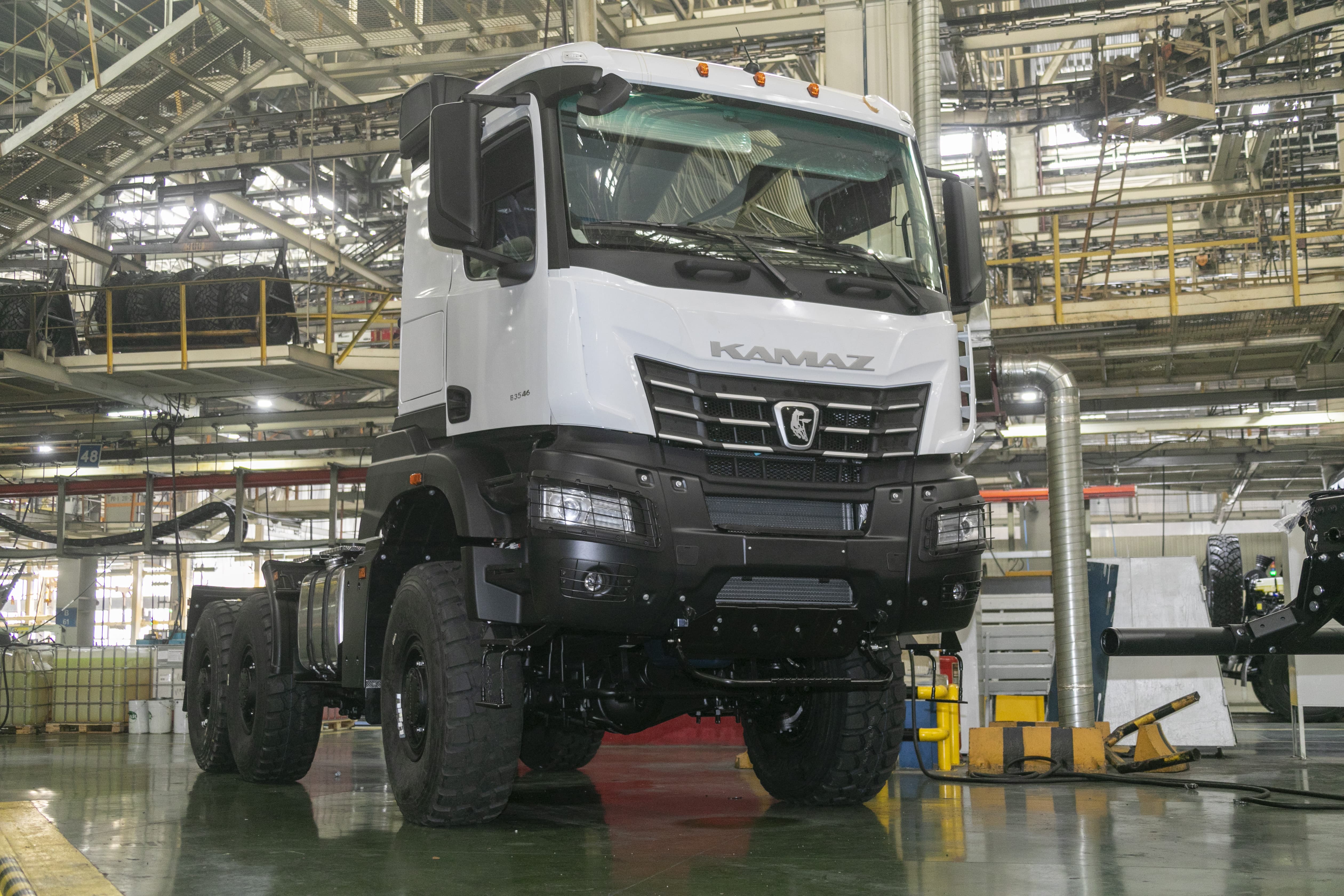 Тягач оснащён новейшей системой автоматической подкачки шин с управлением через экран бортовой информационной системы. Грузовик также отличается высокой степенью проходимости благодаря полному приводу: колёсная формула 6х6, все три моста — ведущие, с планетарными колёсными редукторами и конической центральной передачей. Также можно отметить прочный металлический передний бампер и высокий клиренс.