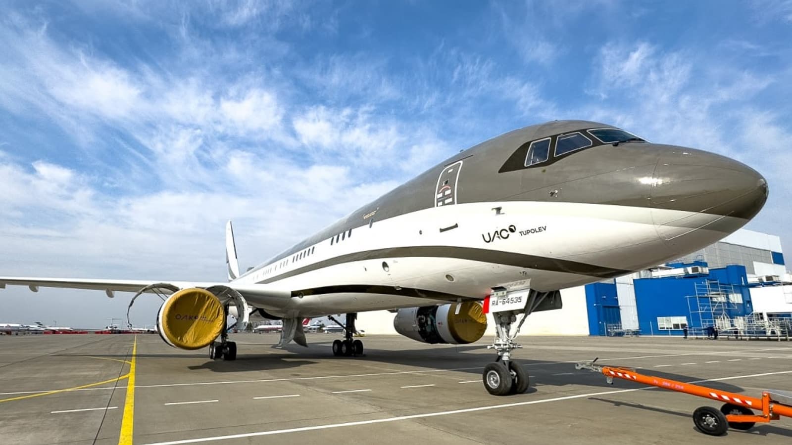На опубликованных в Сети кадрах видно, что самолёт раскрасили в бело-коричневые тона. На борту можно увидеть регистрационный номер лайнера — RA-64535. Самолёт прибыл на покраску в Минск 24 февраля и улетел обратно в Казань 10 марта.