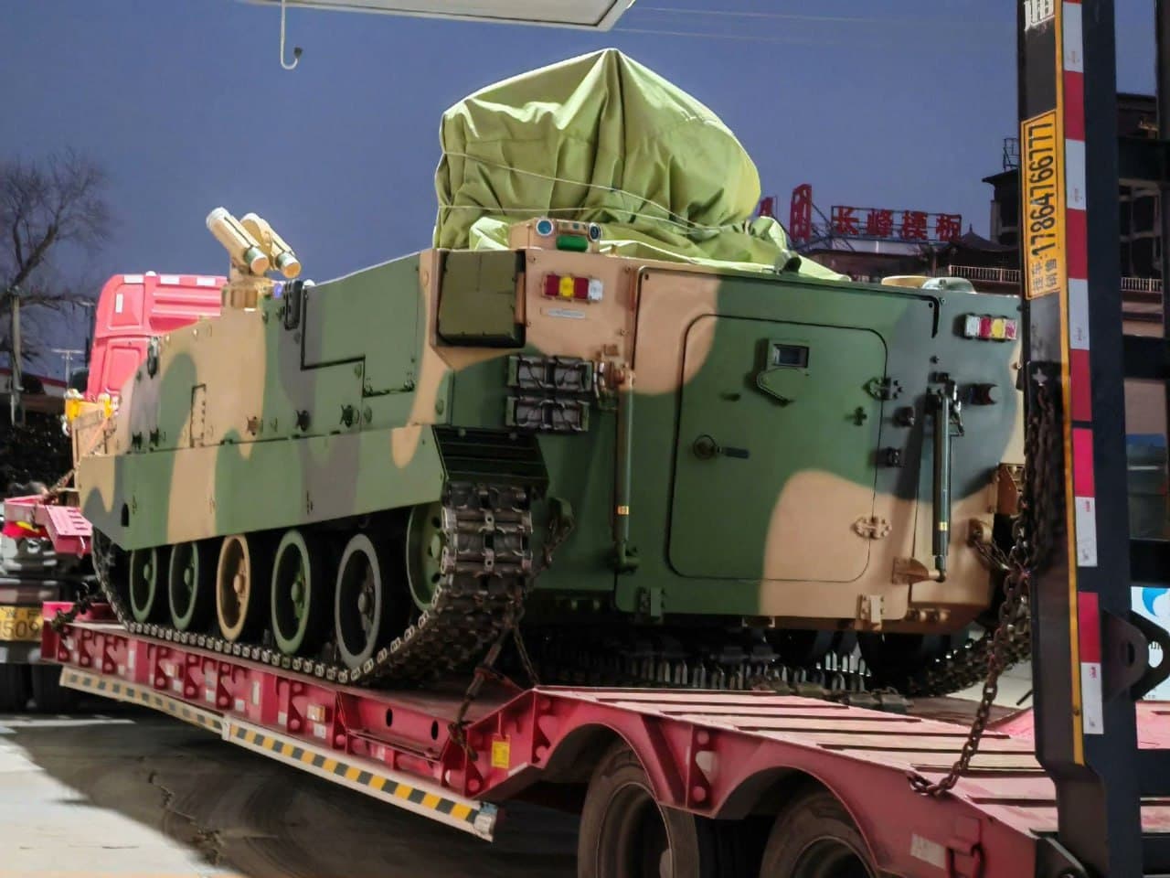 Новую боевую машину десанта (БМД) китайской армии с комплексом активной защиты (КАЗ), способной сбивать дроны и ракеты, заметили во время перевозки. Снимки завирусились в Сети.