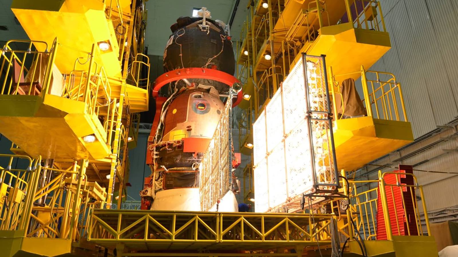 На космодроме Байконур активно готовятся к запуску пилотируемого корабля «Союз МС-27». В рамках важного этапа испытаний специалисты Роскосмоса развернули солнечные панели аппарата и подвергли их воздействию мощных светильников.