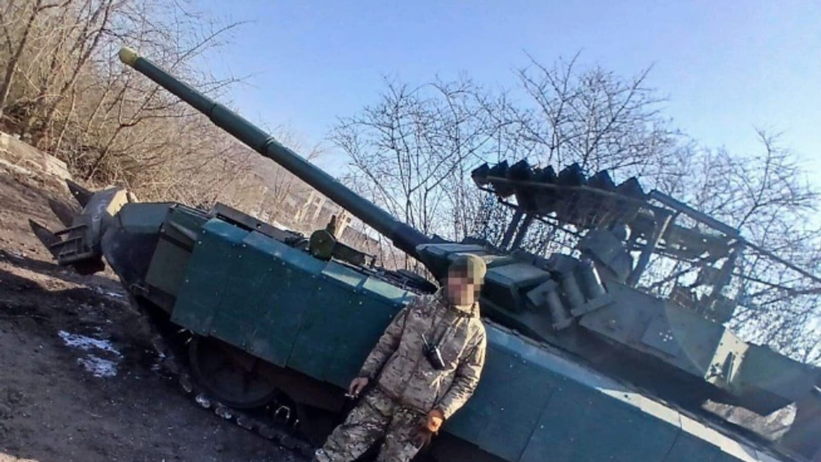Также танк оснащён доработанным антидроновым козырьком и ножевым минным тралом КМТ-8. При этом опорные катки на боевой машине — нового образца, которые идут на Т-90М.