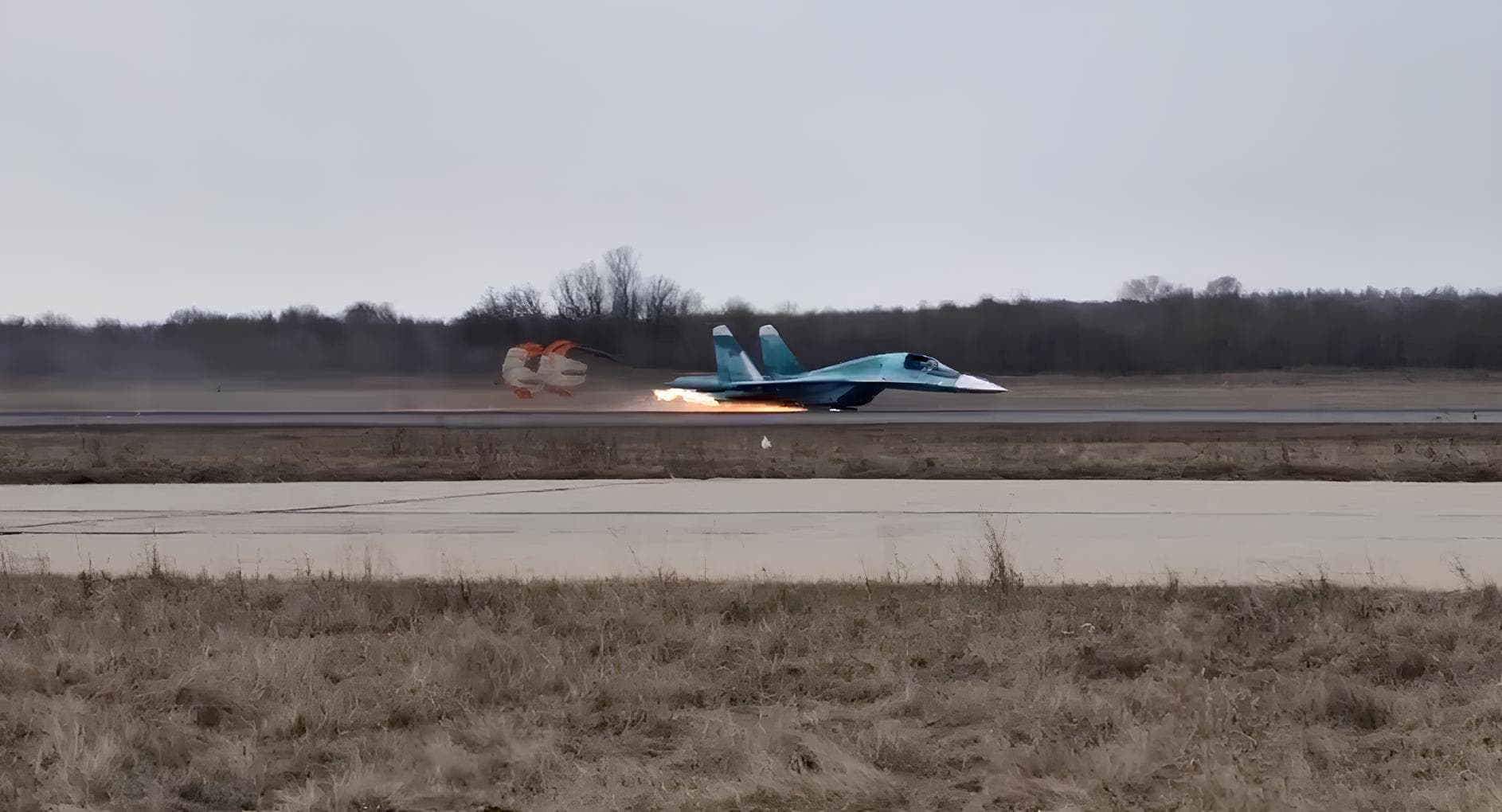 В Сети появились кадры посадки российского истребителя четвёртого поколения Су-34 «на брюхо». Подобный случай первый в истории боевых самолетов такого типа.