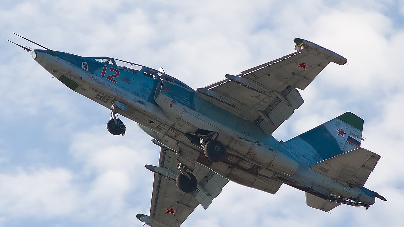 Су-25 (по кодификация НАТО - Frogfoot) — бронированный дозвуковой всепогодный турбореактивный штурмовик. Предназначен для поддержки сухопутных войск над полем боя, уничтожения наземных объектов и малоскоростных воздушных целей.