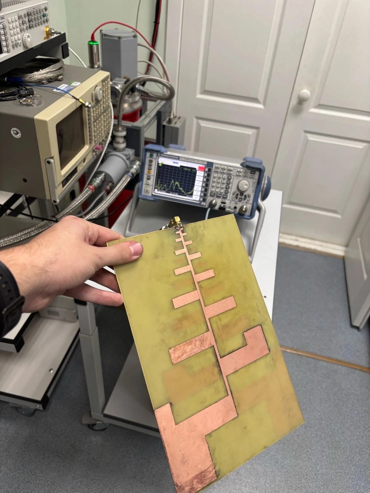 Прототип выполнен на тонкой диэлектрической подложке из стеклотекстолита с нанесенным на поверхность специальным рисунком. Конструкция антенны отличается плоским исполнением, что значительно упрощает и удешевляет производство по сравнению с объемными аналогами.