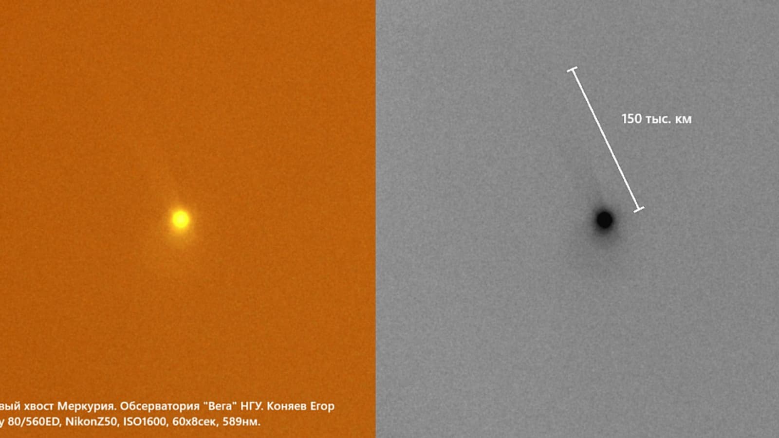 Астрономы Новосибирского государственного университета впервые в России зафиксировали натриевый хвост Меркурия, напоминающий хвост кометы.