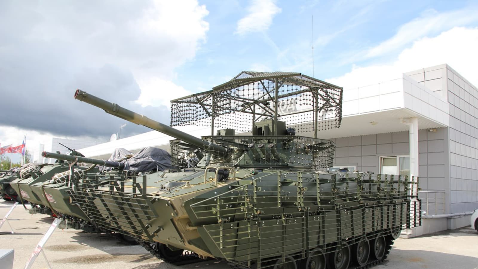 На вооружении боевой машины стоят: 100 мм пушка, 30 мм автоматическая пушка и 7,62 мм пулемет. Экипаж и десант — 3 члена экипажа + 7 десантников с полной экипировкой.