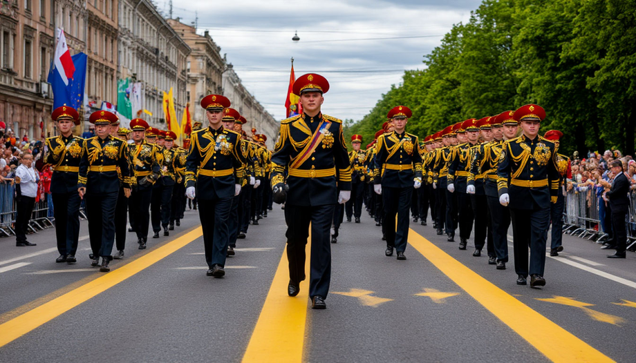 В центре Москвы начали наносить временную дорожную разметку для репетиций и парада Победы, который состоится 9 мая. Специалисты занимаются разметкой на Тверской улице от Пушкинской площади до Красной площади, где появится шесть полос длиной 1 084 метра каждая. Также жёлтые линии будут нанесены на пересечении Тверской и Моховой улиц, а также на Манежной площади.
