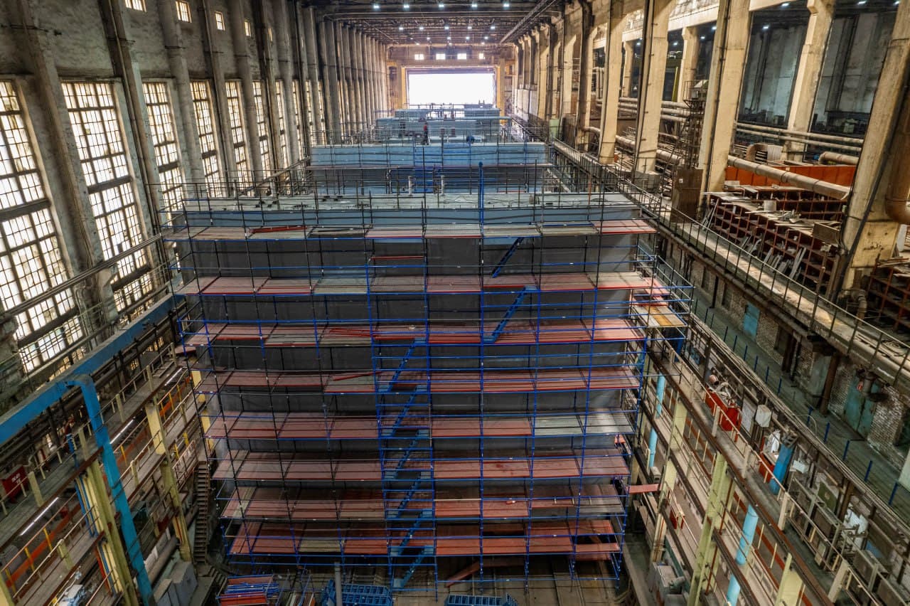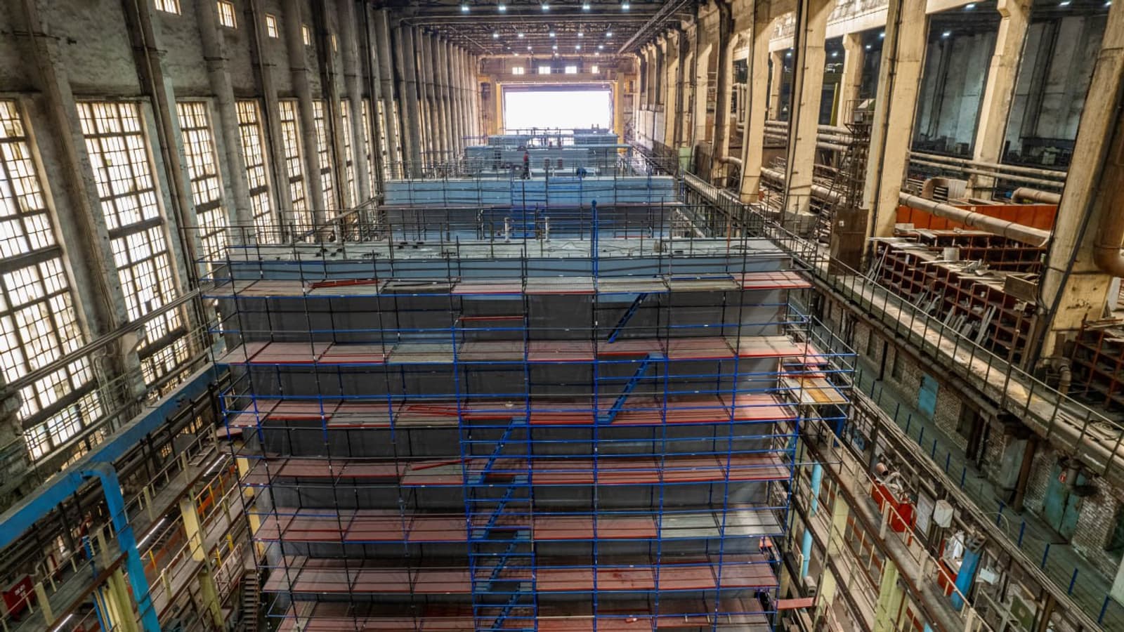 Блок находится в высокой степени готовности — он полностью сформирован и уже предъявлен Российскому Классификационному Обществу. На конструкции установлены все трубопроводы, за исключением забойных межблочных, а также завершены малярные работы, кроме участков, предназначенных для монтажных стыков.