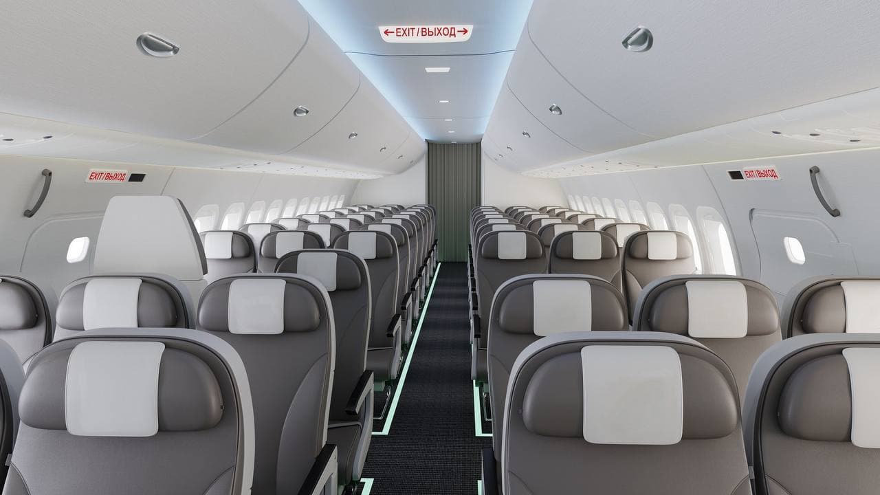 В Сети появились кадры салона самолета МС-21. Фотографию опубликовал Telegram-канал «Заметки авиастроителей».