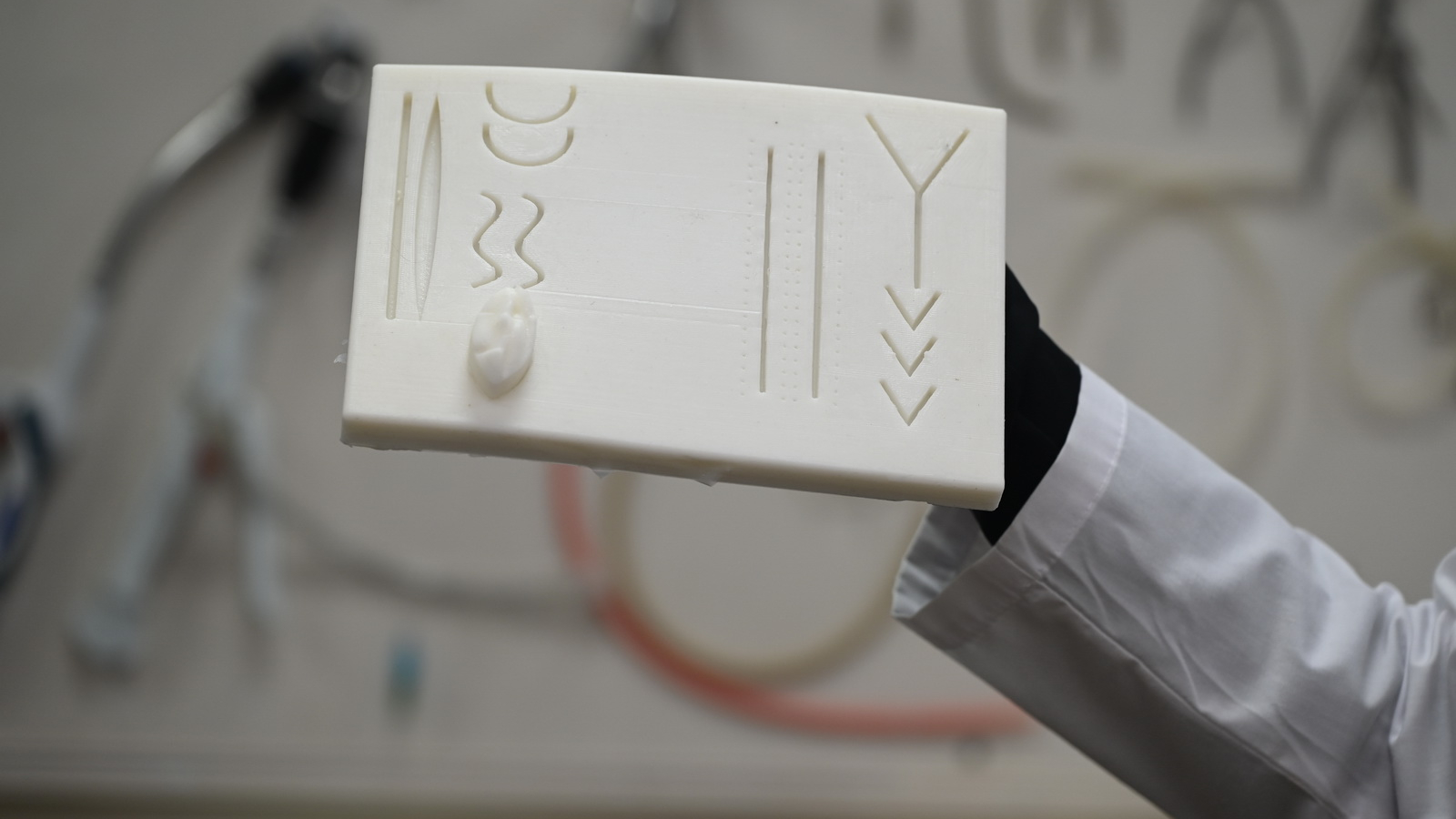 Тренажёр представляет собой площадку из мягкого силикона, имитирующую человеческую кожу. Аналогов на российском рынке не существует. На разработку был получен патент.