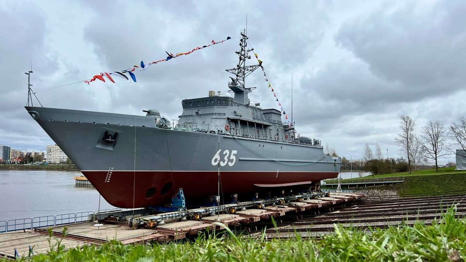 Корабль противоминной обороны проекта 12700 «Александрит» способен развивать скорость до 16 морских узлов, а его водоизмещение — примерно 890 тонн, экипаж — 44 человека.