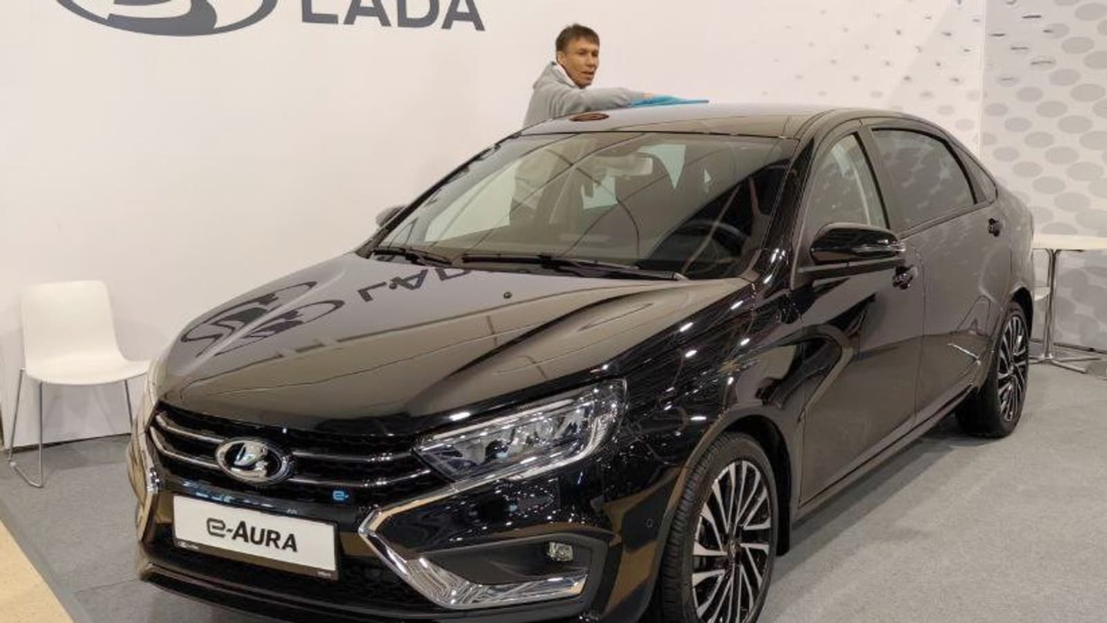 На выставке «Электротранс» в Москве АвтоВАЗ представил прототип электрического седана Lada e-Aura.