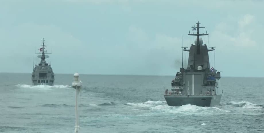 Накануне экипажи кораблей Тихоокеанского флота провели в Сиамском заливе совместное военно-морское учение типа PASSEX с ВМС Королевства Таиланд после выхода из порта Саттахип.