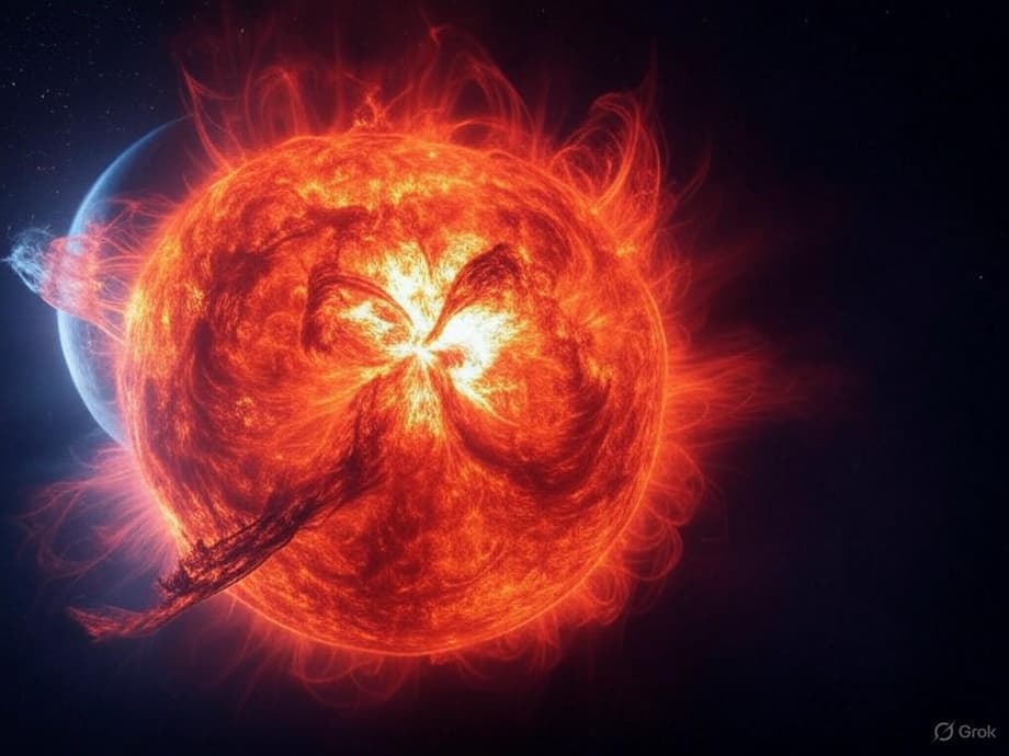 Класс М означает умеренно мощные вспышки, способные вызывать магнитные бури и радиопомехи на Земле.
