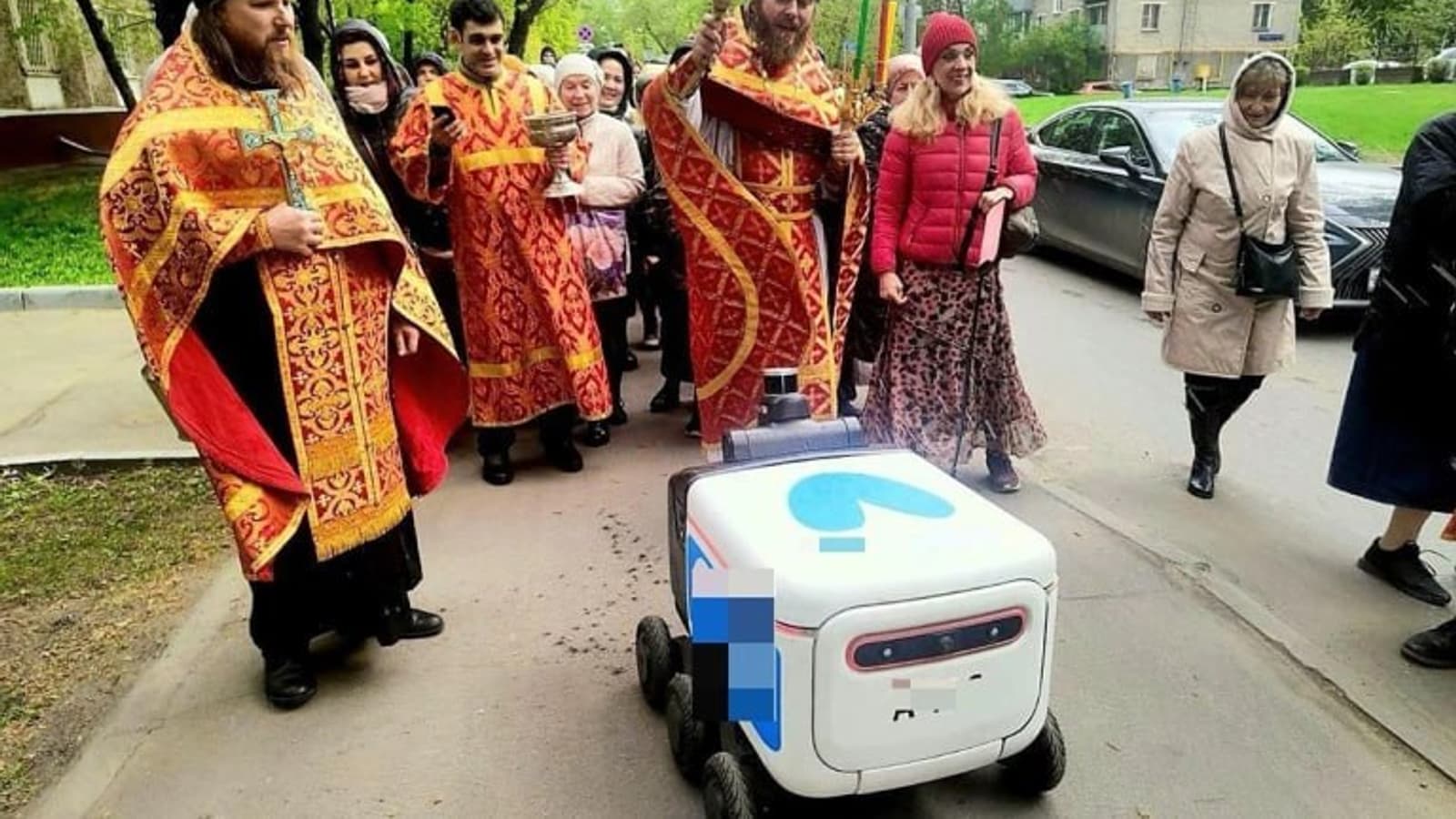 Представитель храма в беседе с журналистами отметил, что робот, вероятно, «ехал навстречу» процессии. Священник не растерялся и окропил устройство, что вызвало положительные эмоции у присутствующих. После этого еда внутри робота стала освящённой. На устройстве был виден логотип «Яндекс Лавки».