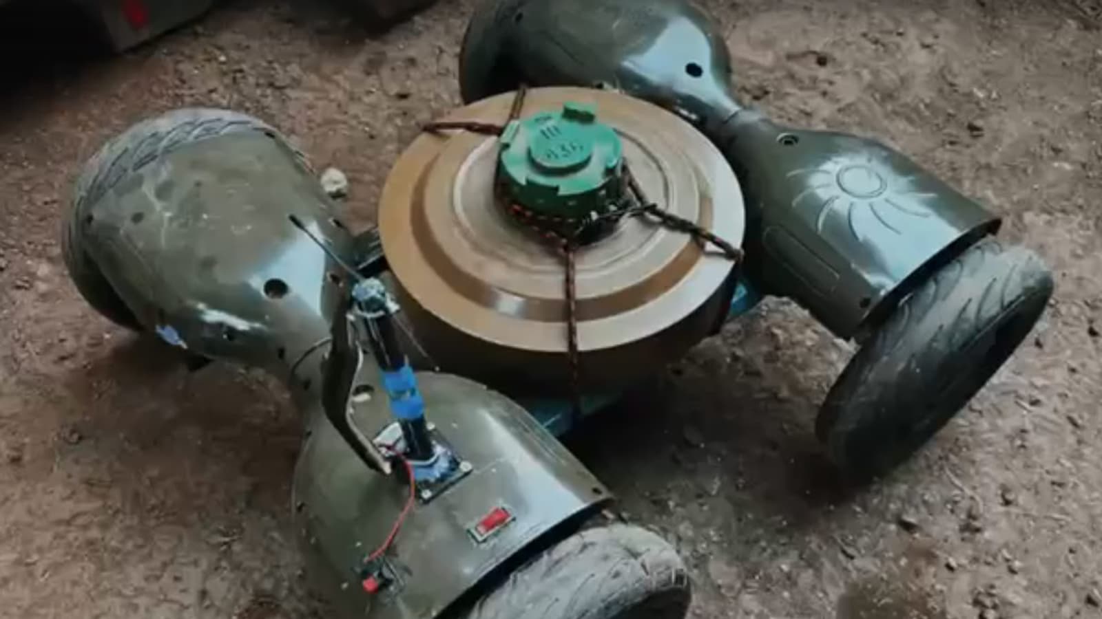 Бойцы Вооруженных сил России начали применять дроны-камикадзе, созданные на основе противотанковой мины ТМ-62 и двух гироскутеров, для уничтожения укреплений на линии соприкосновения.