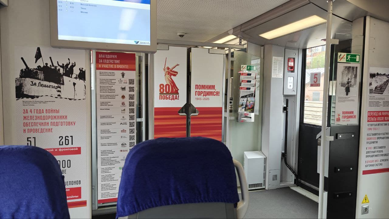 Железнодорожники украсили «Ласточку» к годовщине Победы в Великой Отечественной войне. Тематический поезд будет курсировать между Москвой и Петербургом с 9 мая, об этом сообщила пресс-служба РЖД.