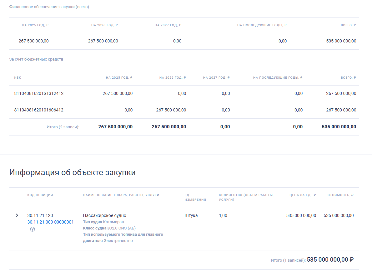 Как сообщается в материалах «ЕИС», катамаран предназначен для регулярных речных перевозок. Проект должен быть реализован до 31 декабря 2026 года. Аналогичное судно уже успешно эксплуатируется в Ярославле.