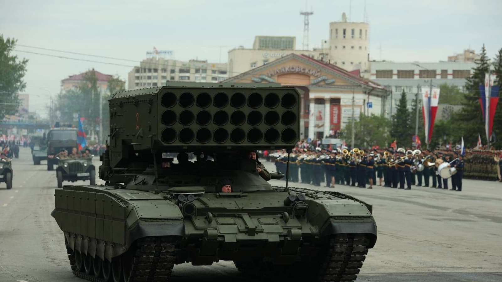 Бронетехника Омского завода транспортного машиностроения прошла в сводной парадной колонне в Омске. В День Победы омичам впервые показали боевую машину тяжёлой огнемётной системы ТОС-1А и танки Т-80БВМ.