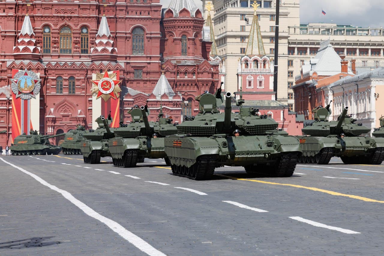 На военном параде выступила и новейшая боевая техника. В парадный расчет включили целый танковой батальон — по брусчатке Красной площади проследовали 30 машин: по 10 единиц танков Т-90М, Т-72Б3М и Т-80БВМ.