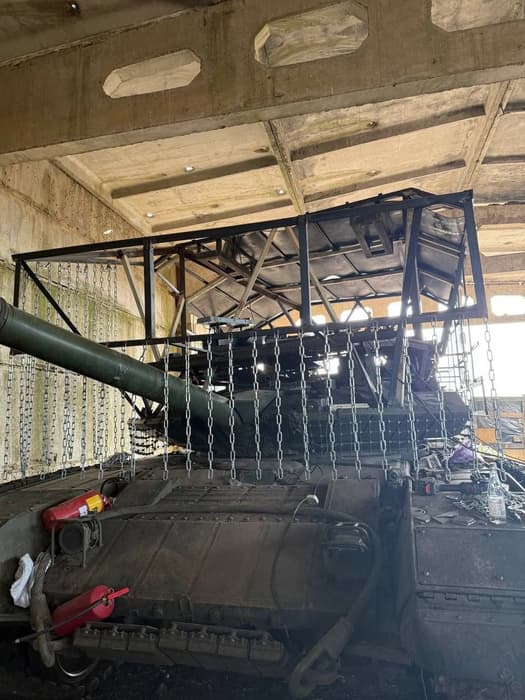 Двухярусные противотандемные противодронно-противокумулятивные козырьки начали появляться на российских основных танках Т-90М. Кадры появились в социальных сетях.