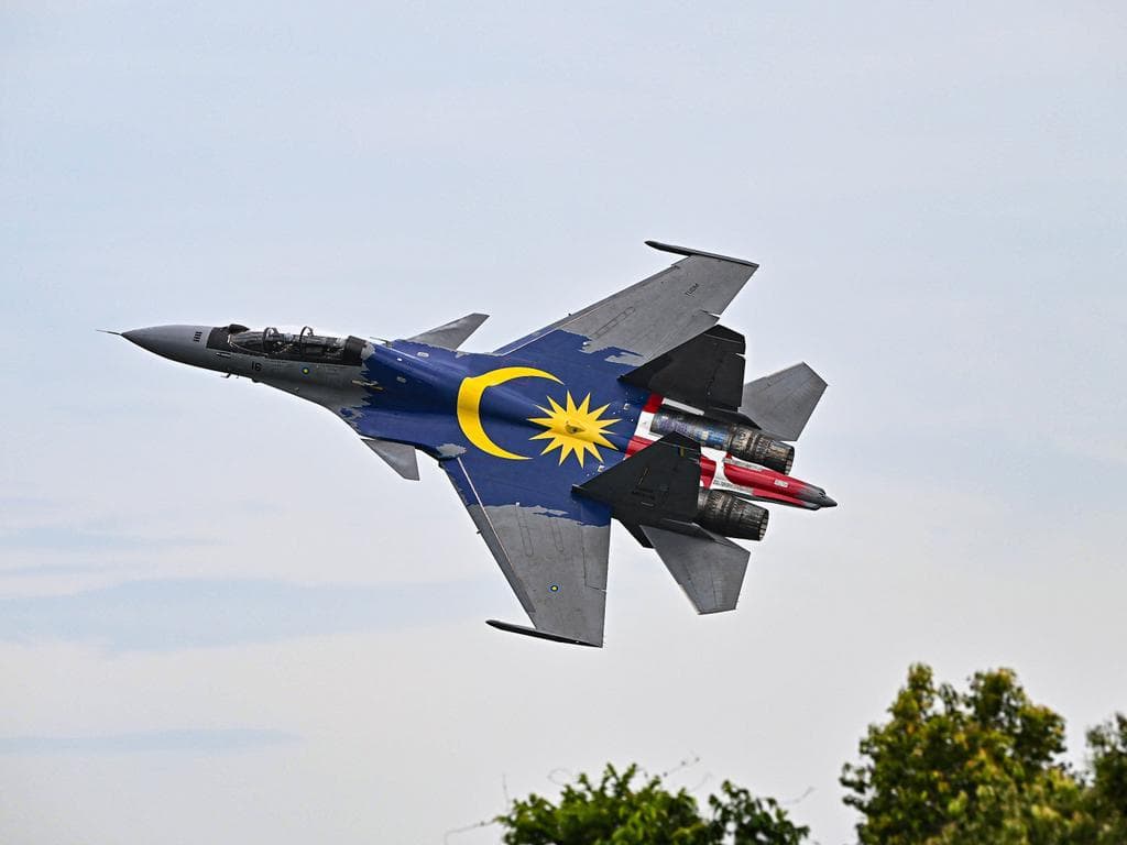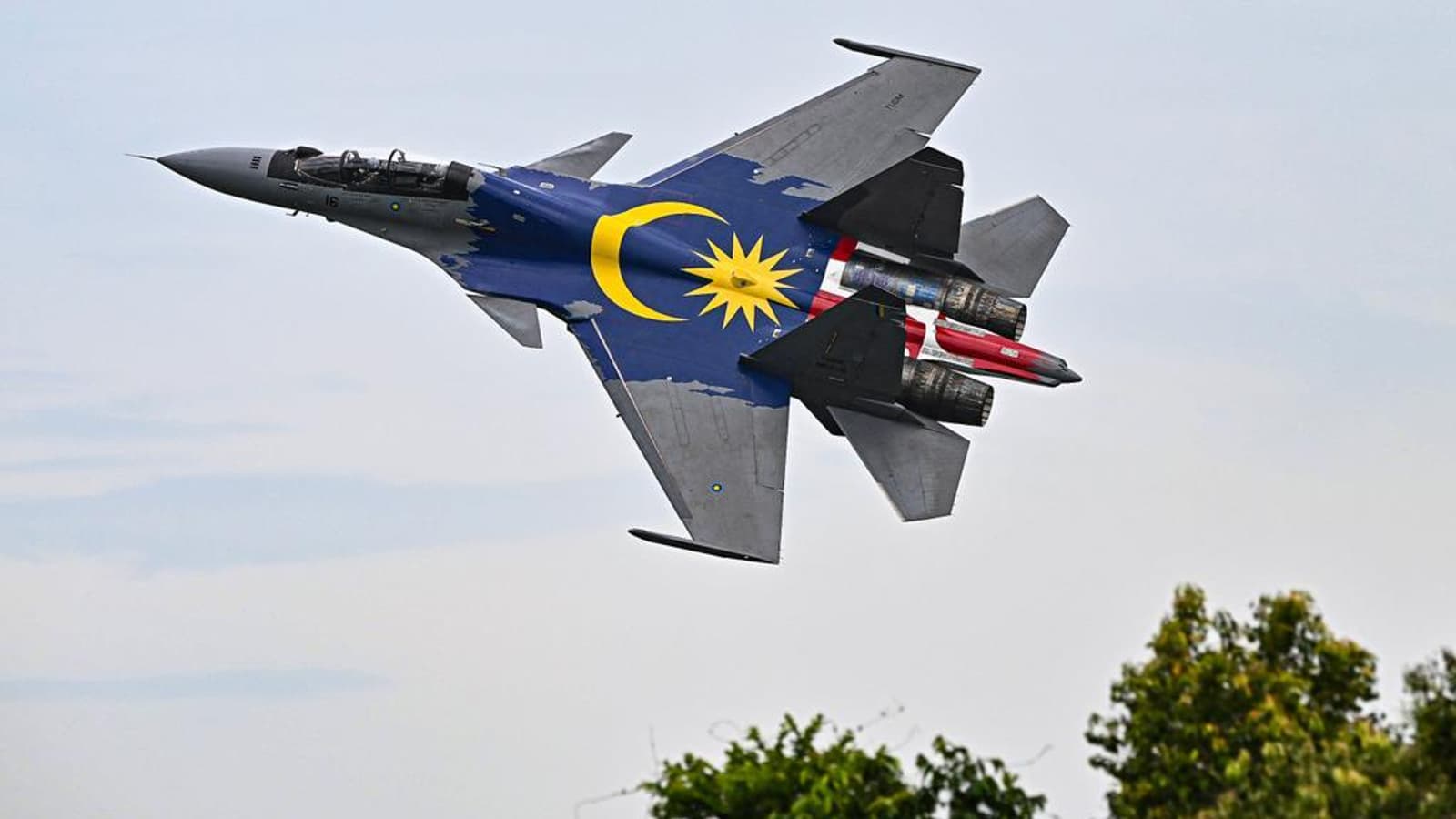 Королевские Военно-воздушные силы Малайзии представили истребитель Су-30МКМ российского производства в специальной окраске. Самолёт несет на верхней части фюзеляжа огромный рисунок малазийского флага.