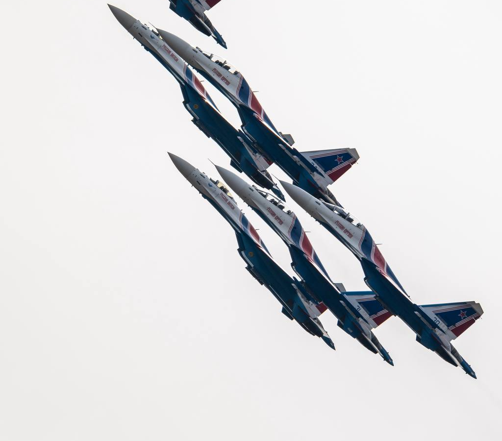 Авиационная группа высшего пилотажа «Русские Витязи» продемонстрировали работу передовых истребителей Су-35С и Су-30СМ на выставке LIMA 25 в Лангкави (Малайзия).