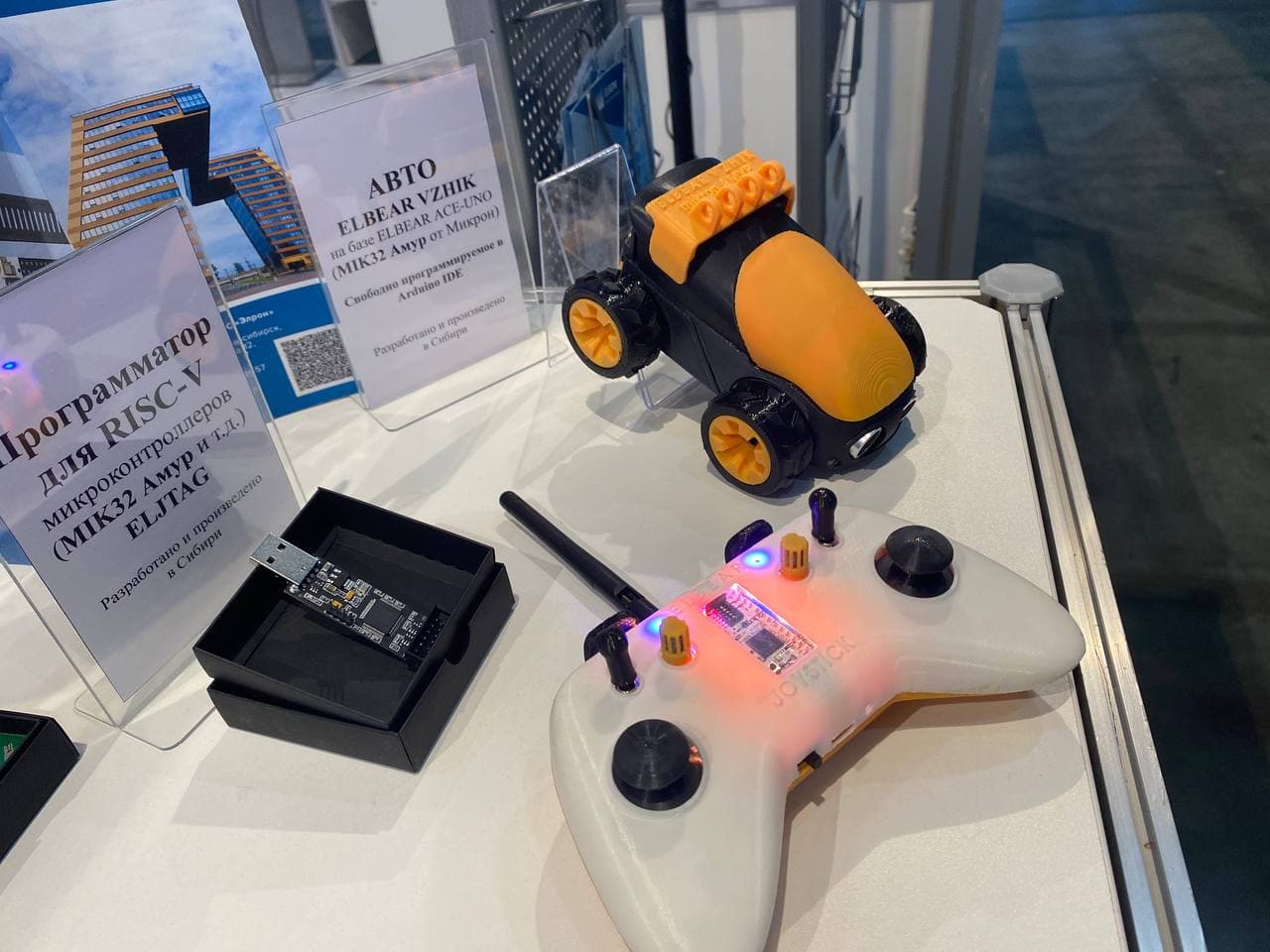 Компания «Элрон» представила на форуме «Прибориум» робототехнический комплекс, призванный заменить робототехнические наборы Lego, которые больше не поставляются в Россию. Разработка включает программируемую машинку и пульт управления, совместимые с открытой платформой Arduino.