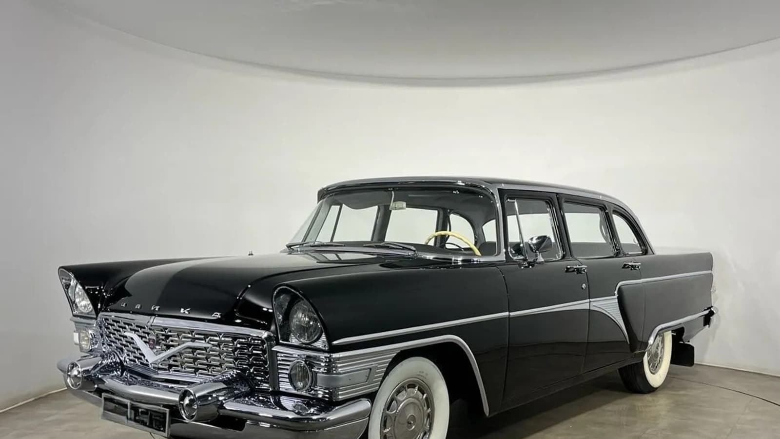 ГАЗ-13 «Чайка» — один из самых престижных советских автомобилей, выпускавшийся с 1959 по 1981 год. Его часто сравнивают с американскими моделями тех лет из-за схожего дизайна и мощного двигателя. Полная масса автомобиля составляет 2625 кг. Сегодня хорошо сохранившиеся экземпляры ценятся коллекционерами, а цены на них могут достигать нескольких миллионов рублей. Цена автомобиля, указанного в объявлении составляет 12 350 000 руб.