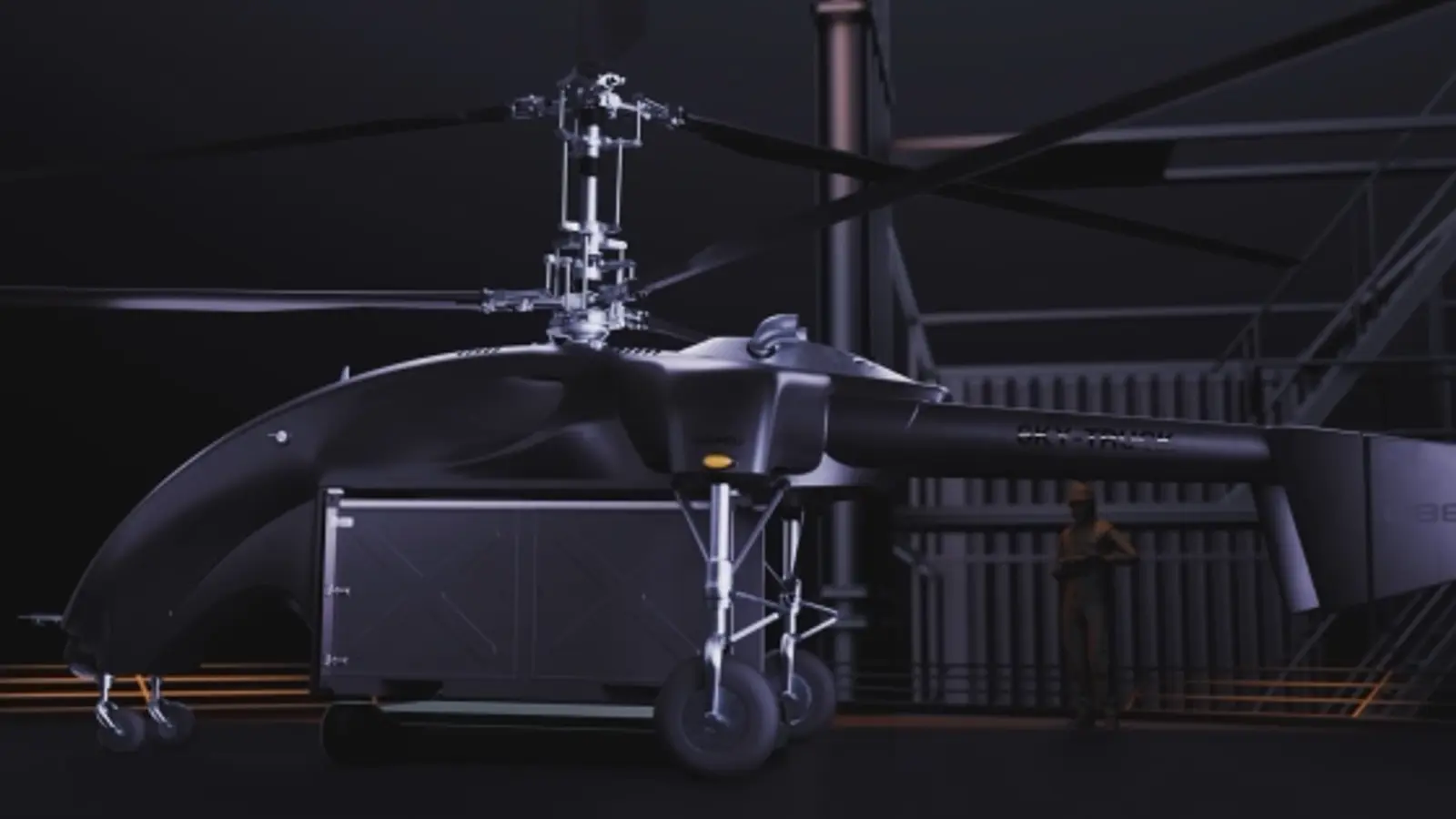 Sky-Truck — это первый в мире опционально пилотируемый летательный аппарат вертолетного типа. Максимальная взлетная масса беспилотника — 3 тысячи кг, продолжительность полета — до 5 часов.