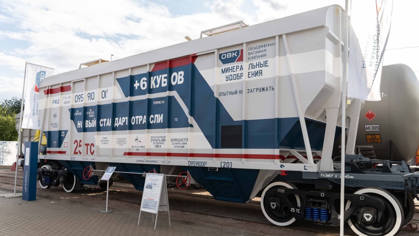 Вагон с осевой нагрузкой 25 тс начнут выпускать на Тихвинском вагоностроительном заводе (ТВСЗ, входит в состав ОВК). Действие сертификата продлится до мая 2030 года.