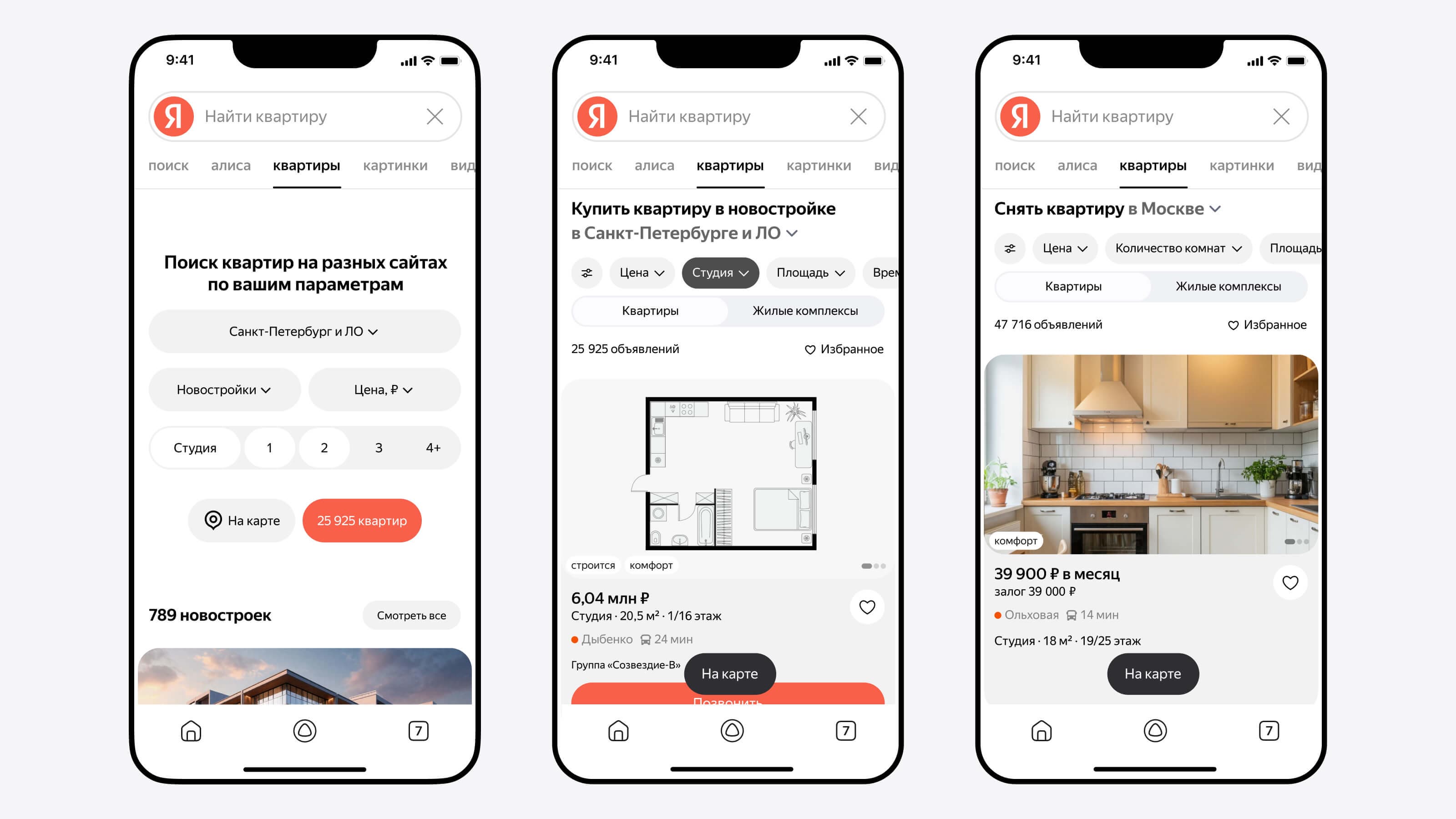 Вертикаль «Квартиры» упрощает поиск жилья для покупки или аренды. Она агрегирует объявления с различных платформ, включая сайты застройщиков. Пользователи могут настроить фильтры по цене, местоположению и другим параметрам, а также сохранять интересные варианты в «Избранное» для дальнейшего просмотра.