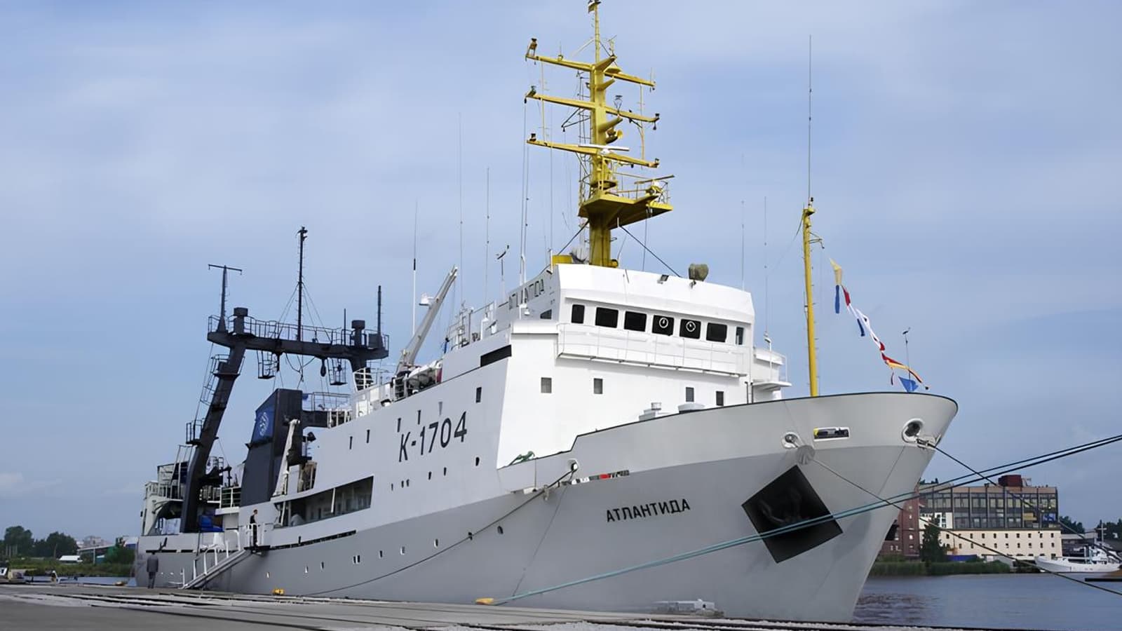 Судно «Атлантида» К-1704 построили в 1987 году на верфи города Штральзунд в Германии. Экипаж судна — около 40 человек, в том числе 11 научных сотрудников. Судно способно выполнять исследовательские траления пелагическим и донным тралами до глубины 1300 м. Переработка выловленной во время экспериментальных тралений рыбы в муку производится на рыбомучной установке.