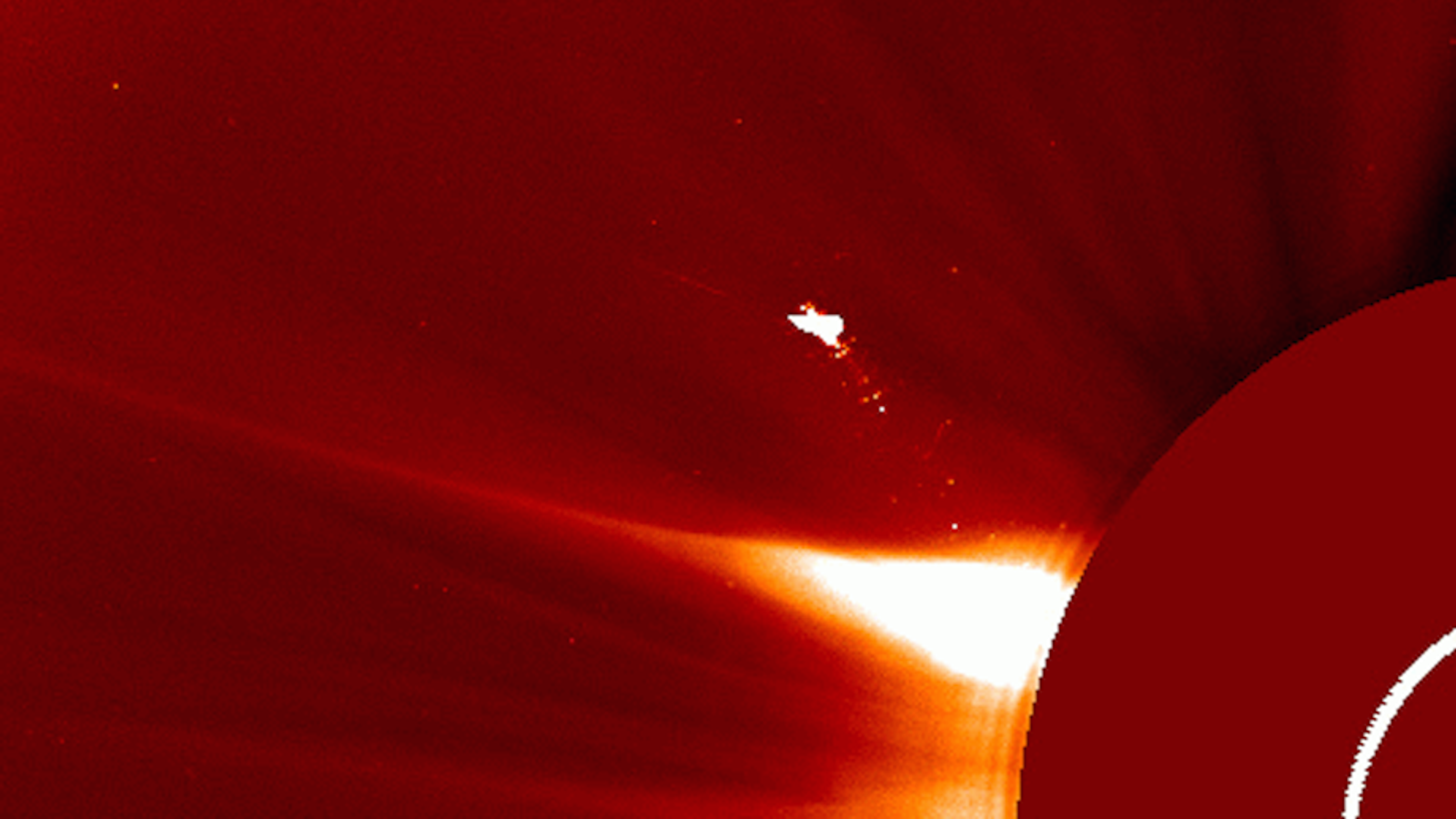 Лаборатория солнечной астрономии ИКИ РАН сообщила о наблюдении необычного оптического явления над Солнцем, зафиксированного телескопом LASCO в 10:00 по всемирному времени. На изображении, полученном с канала C2 солнечного телескопа, зафиксирована структура, визуально напоминающая птицу или летательный аппарат с протяжённым плазменным следом.