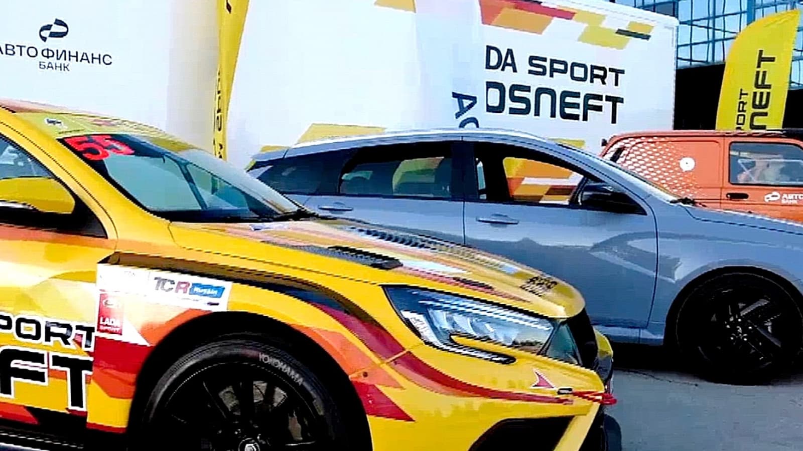 Презентационный автомобиль LADA Vesta SW Sport на новых колёсных дисках и, как ни странно, опять в цвете, напоминающем «Тайфун».