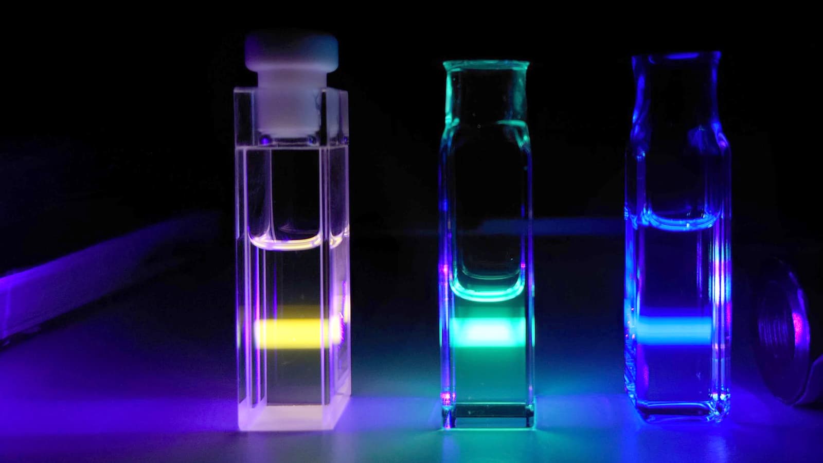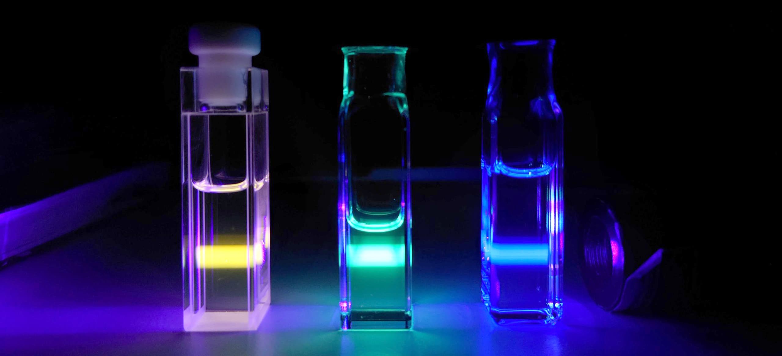 - Обычная флуоресценция – молекула получает энергию (например, от электричества) и сразу испускает свет.