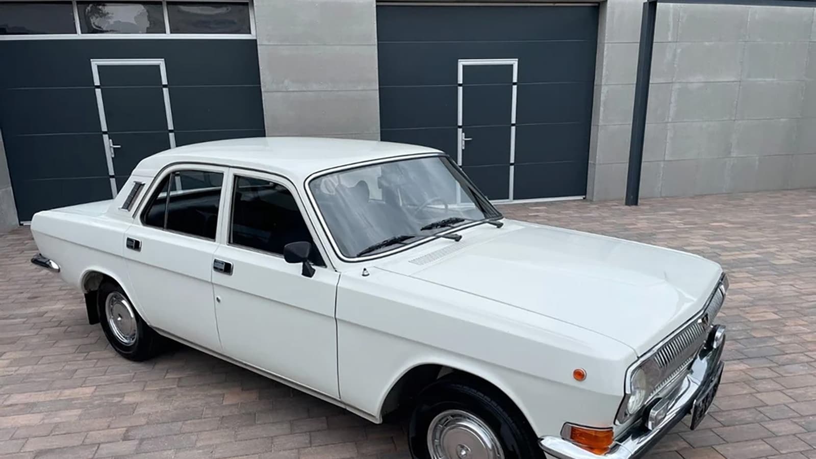 «Волга» оснащена 2,5-литровый двигателем мощностью 100 л.с. и механической коробкой передач. Цвете кузова — белый, а салон выполнен из черной кожи. Среди дополнительных опций можно отметить противотуманные фары и радио.