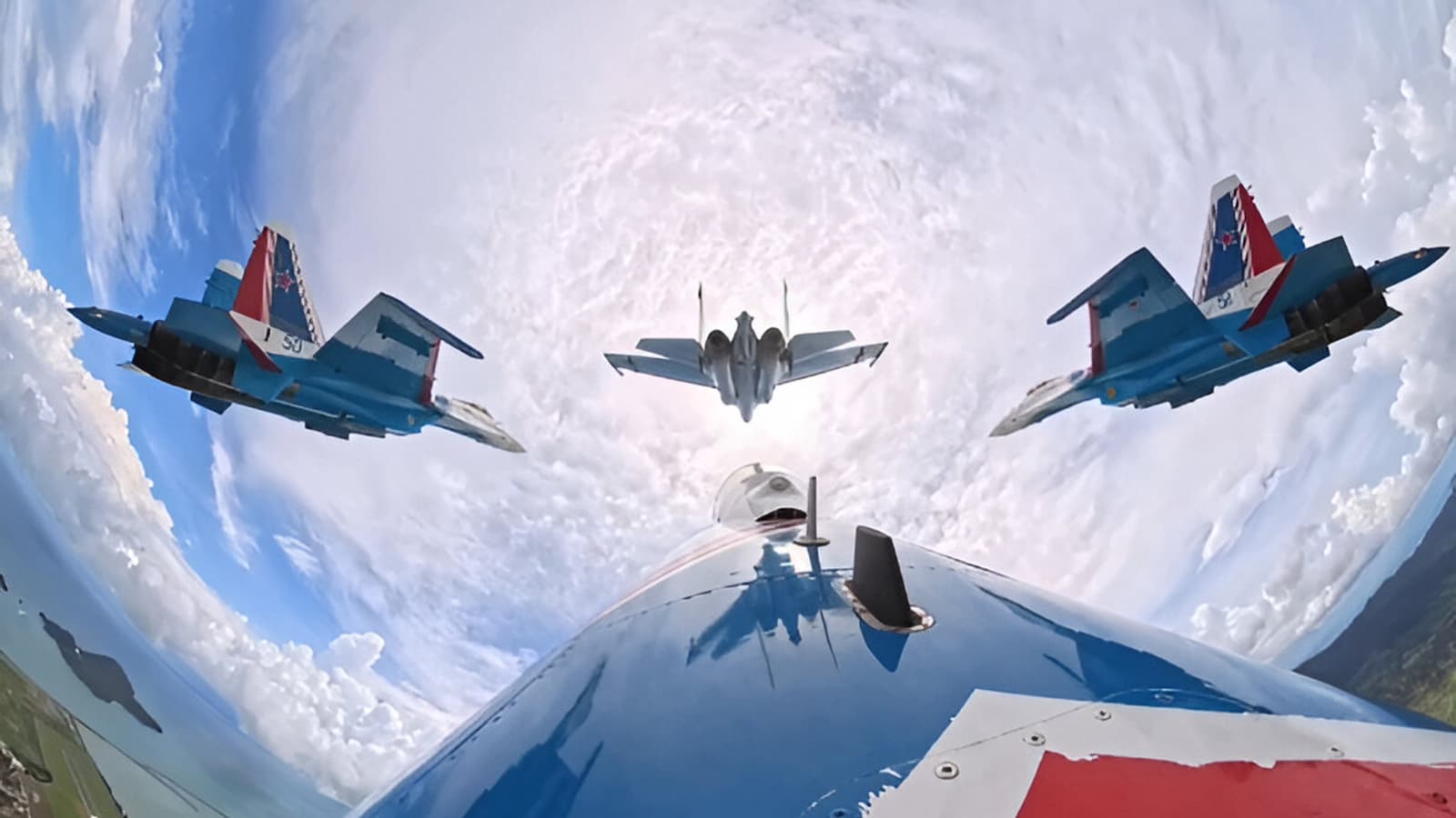На выставке LIMA 2025 в Малайзии пилотажная группа «Русские витязи» продемонстрировала высочайшие летно-технические характеристики сверхманевренных истребителей Су-35C и Су-30СМ. Видео опубликовала пресс-службе группы.