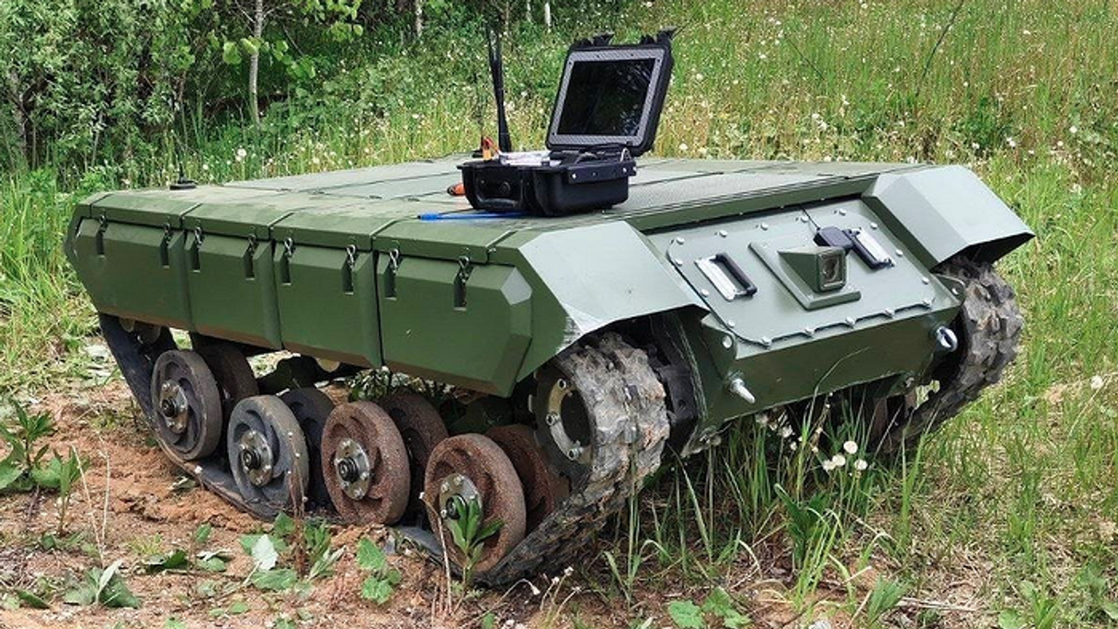 В России испытали наземный дрон «Импульс» с системой автоматического наведения на цель. Бойцы загружают в новинку карту местности с учетом перепада высот.