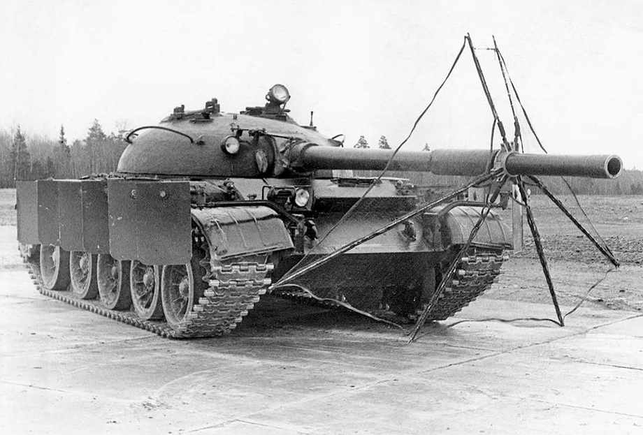 Подобную конструкцию испытывали еще во времена в СССР на танках Т-62. Машину оснастили раскладывающимся «зонтиком», призванным защитить танк от кумулятивных снарядов. Однако необычная конструкция не пошла.