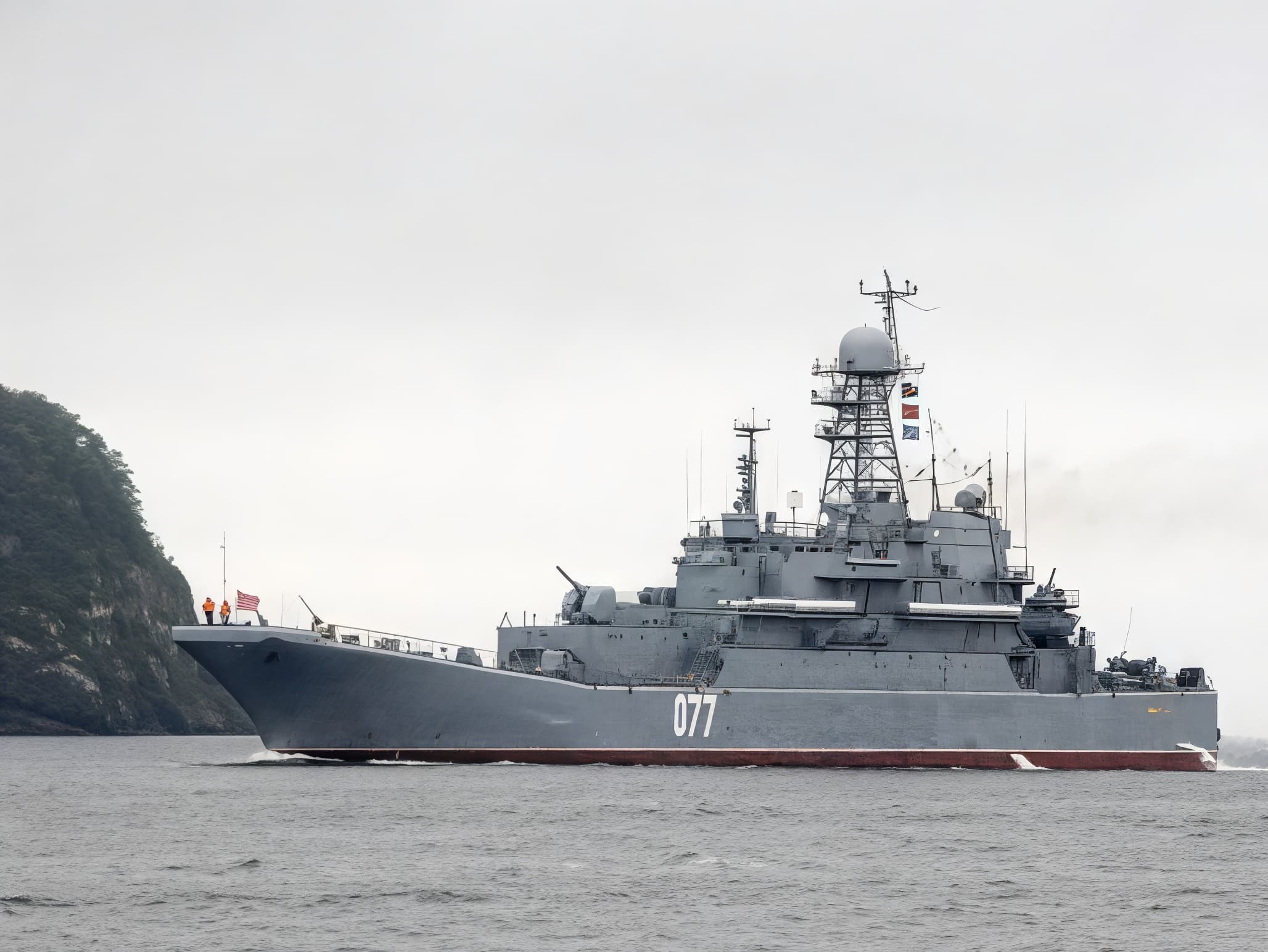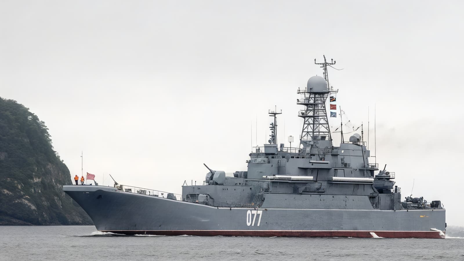 Экипаж большого десантного корабля (БДК) «Пересвет» (проект 775М) Тихоокеанского флота прошел учения по охране судна при стоянке на незащищённом рейде в одном из заливов Курильских островов.