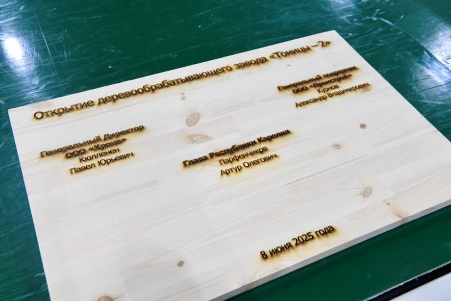 На площадке «Томицы-2» лесопромышленной компании «Крона» состоялось торжественное открытие завода по производству мебельного щита и лестничных элементов. Этот завод станет частью нового комплекса, который карельское предприятие возвело при поддержке правительства республики в рамках крупного инвестиционного проекта.