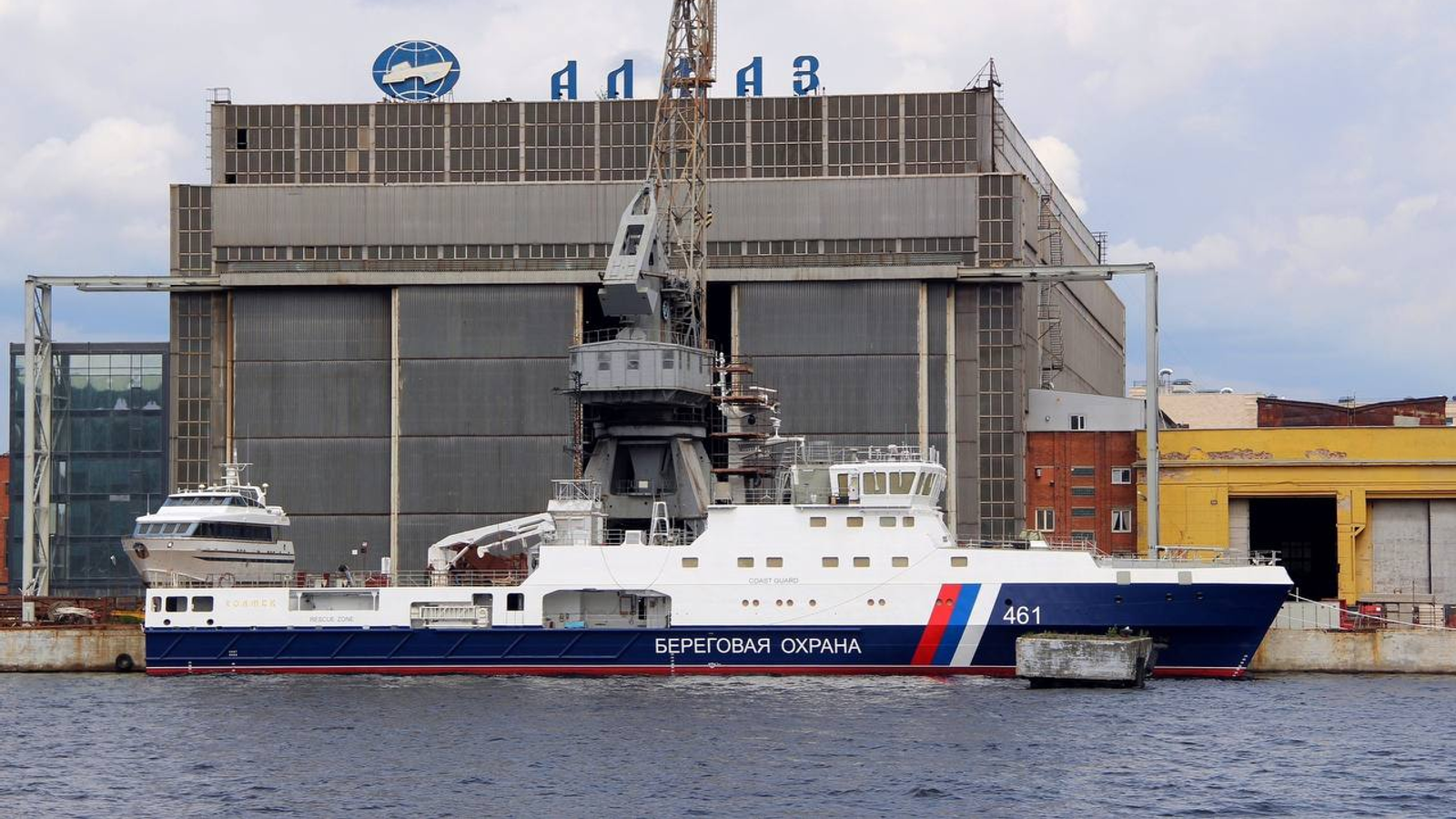 В России на воду спустили новое патрульное судно «Холмск» проекта 22120 шифра «Пурга» для Пограничной службы ФСБ России. Кадры появились в соцсетях.