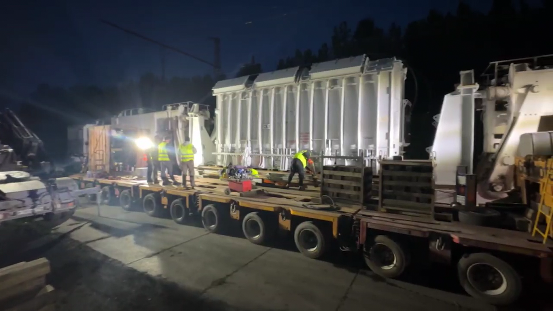 Все силовые трансформаторы относятся к категории тяжеловесных грузов и имеют нестандартные размеры: ширина составляет 3 метра, а высота превышает 4 метра. Для их транспортировки использовалась специальная платформа — колодцевый транспортёр длиной 40 метров.