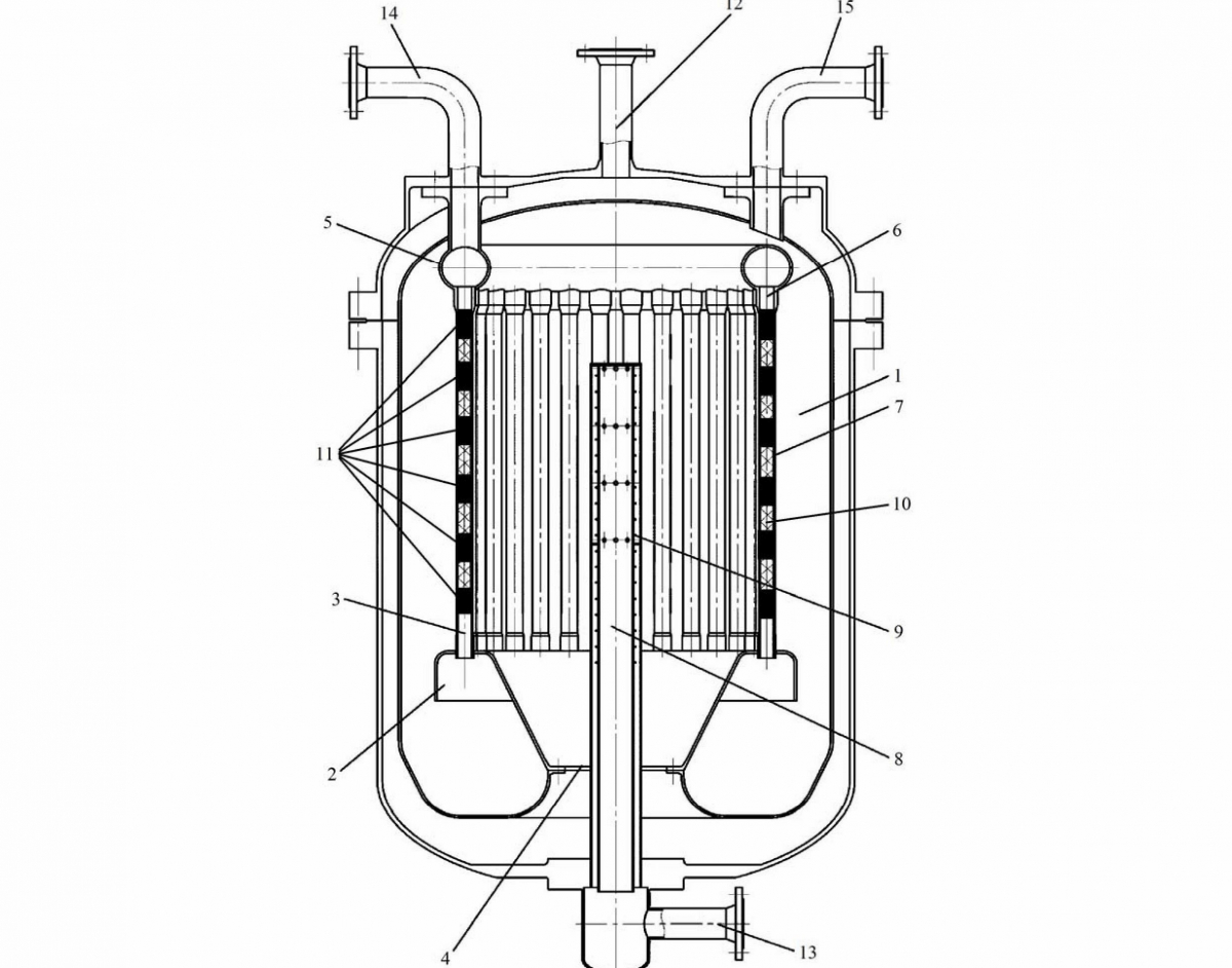 Наше устройство для получения синтез-газа содержит реакторную камеру — полый цилиндр, внутри которого установлены 30 каналов (трубок) увеличенного диаметра и система нагрева, представляющая собой центральную трубу с отверстиями для выхода тепла. Сами каналы заполнены с чередованием слоев катализатора (никель с керамикой) и слоя металлических шариков. Такая конструкция обеспечивает одинаковый прогрев и повышение производительности реактора на 30%.