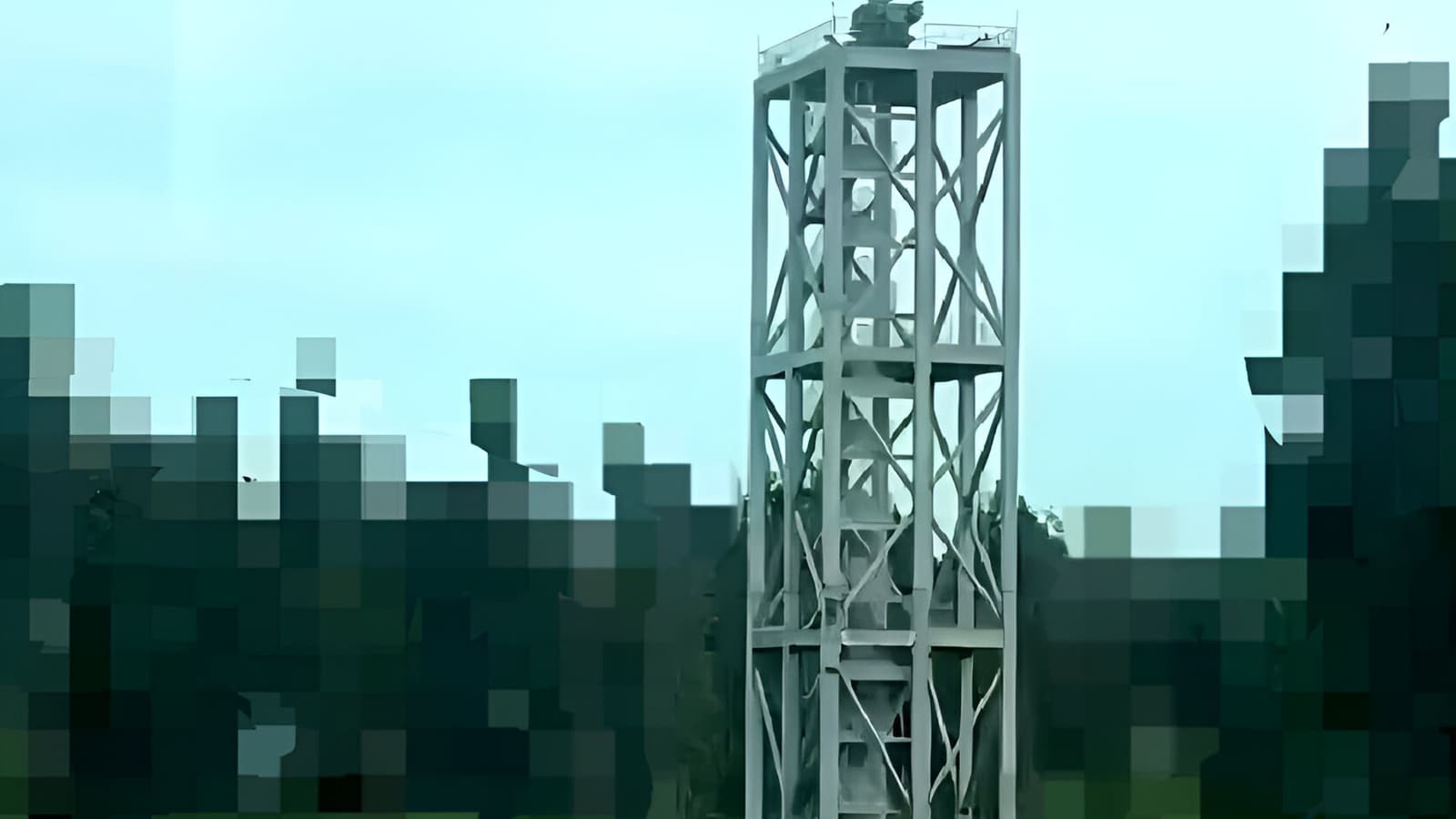 В Сети появились кадры модуля российского зенитного ракетно-пушечного комплекса (ЗРПК) «Панцирь-С1», размещённого на высотной фермовой вышке.