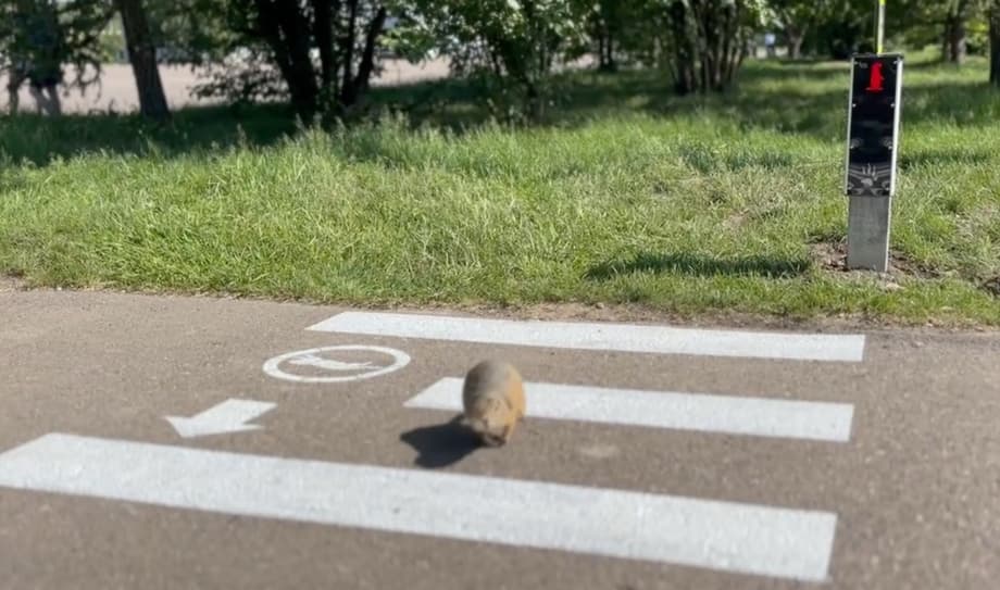 В Красноярске на острове Татышев появился светофор для сусликов. Светофор оборудован сенсорной «пешеходной» кнопкой и светоотражающими элементами — всё сделано по правилам.