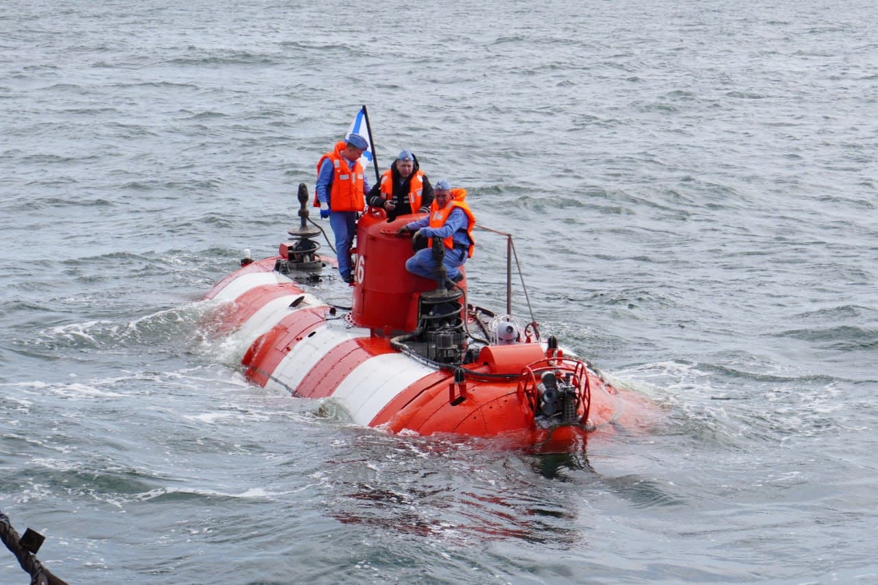 С судна-носителя спустили глубоководный спасательный аппарат АС-26. Его экипаж обнаружил подлодку, лежащую на глубине около 60 метров.